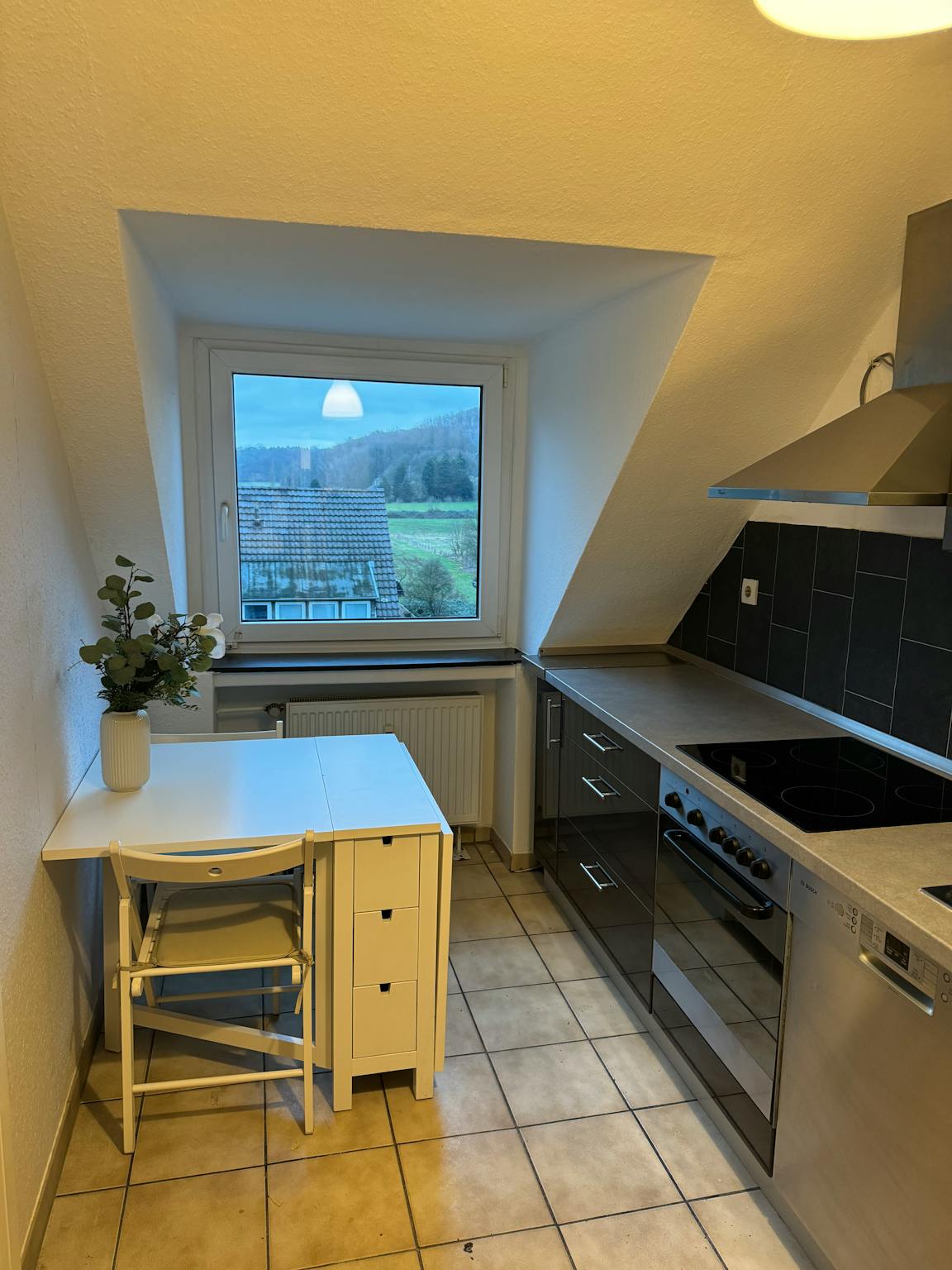 Die Küche verfügt dank einer großen Fensterfront über viel Tageslicht.