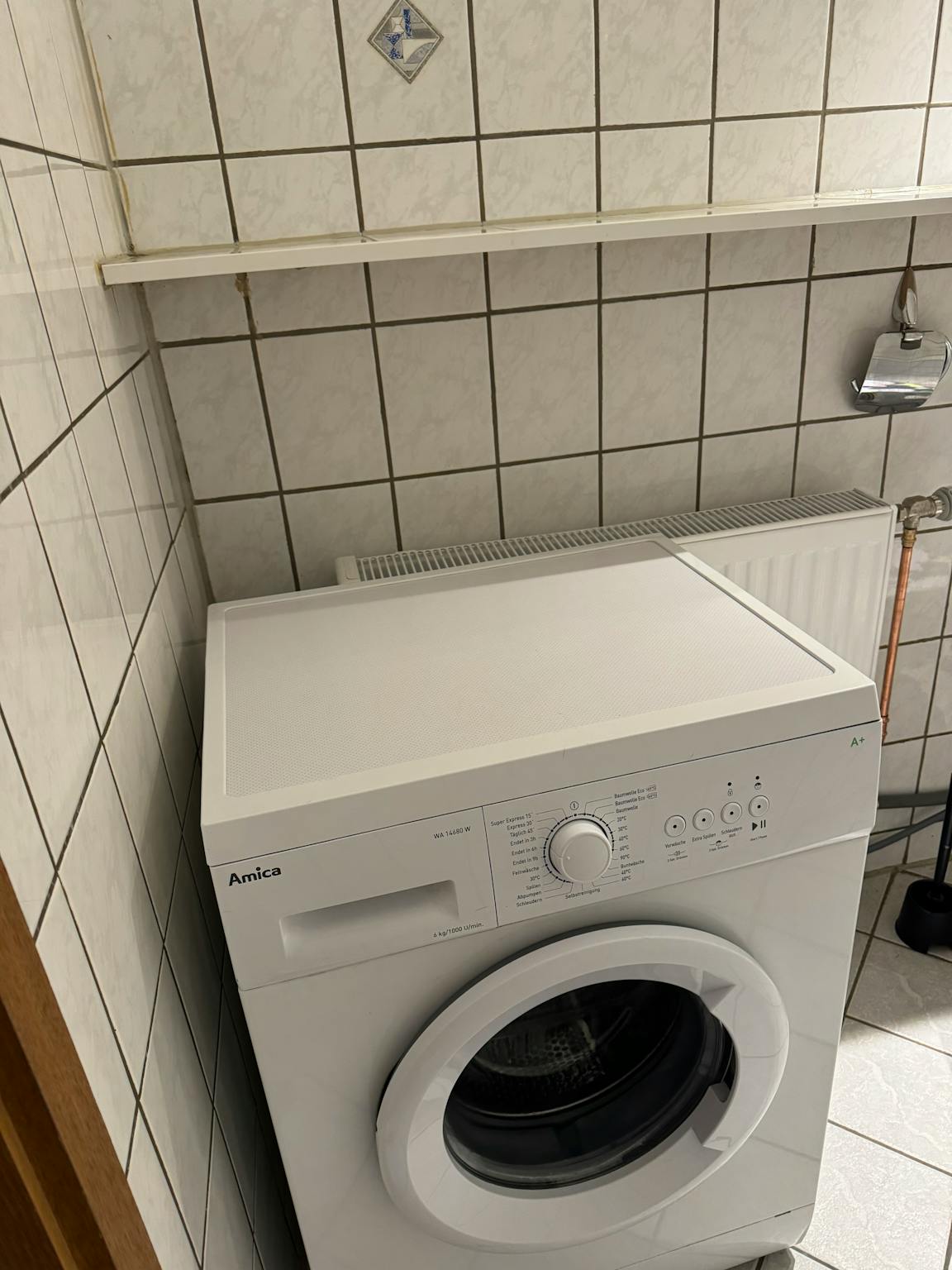 Das Badezimmer ist mit einer Badewanne und Waschmaschine ausgestattet