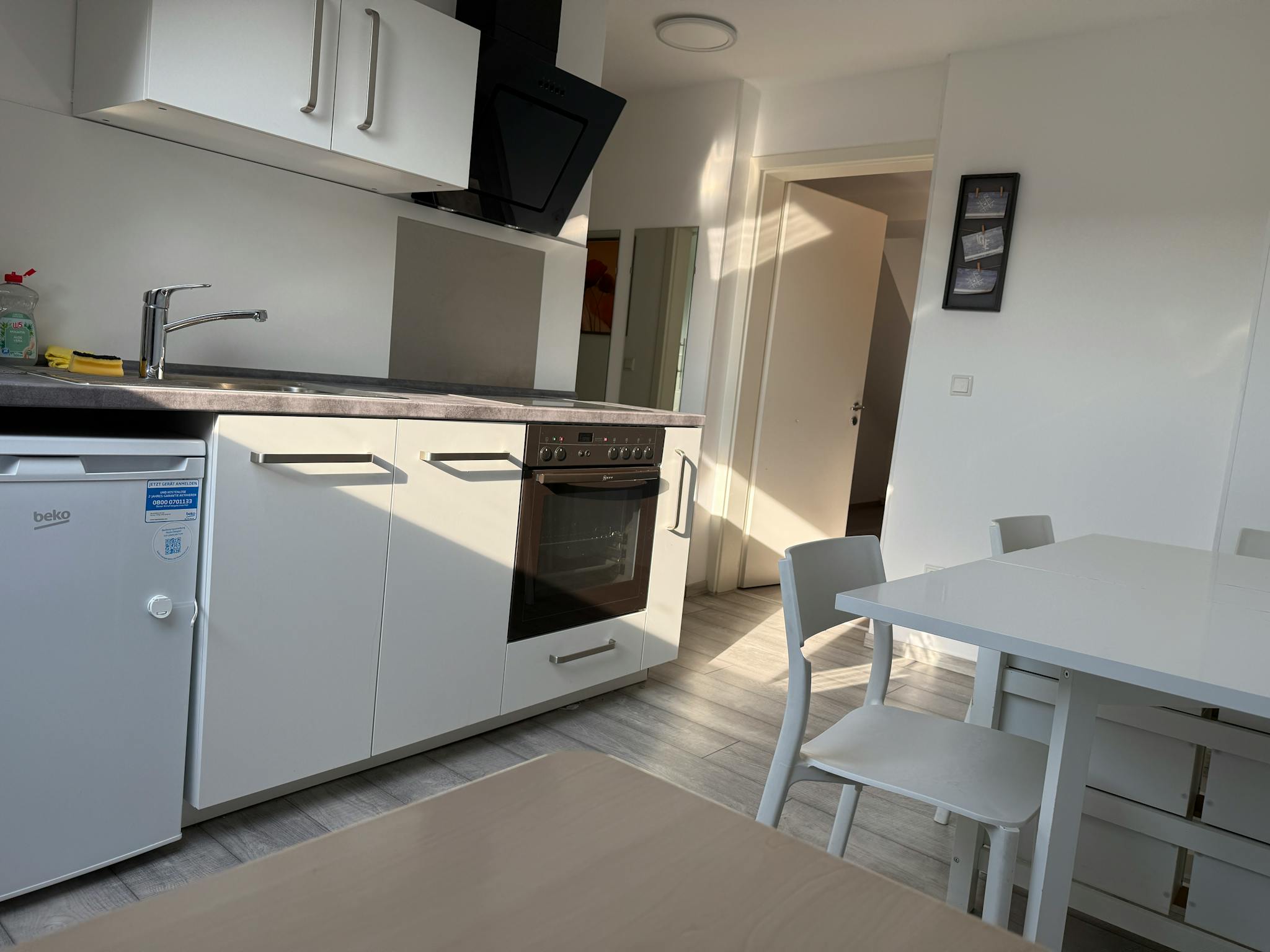 Die Wohnung ist vollständig möbliert und sofort bezugsfertig. Das Wohnzimmer verfügt über eine gemütliche Sitzgelegenheit, TV und Essbereich. Im Schlafzimmer stehen 2 einzelne betten sowie Stauraum zur Verfügung. Die separate Küche ist komplett ausgestattet (Kochfeld, Kühlschrank, Geschirr, Kochutensilien). Das Badezimmer ist funktional und gepflegt.