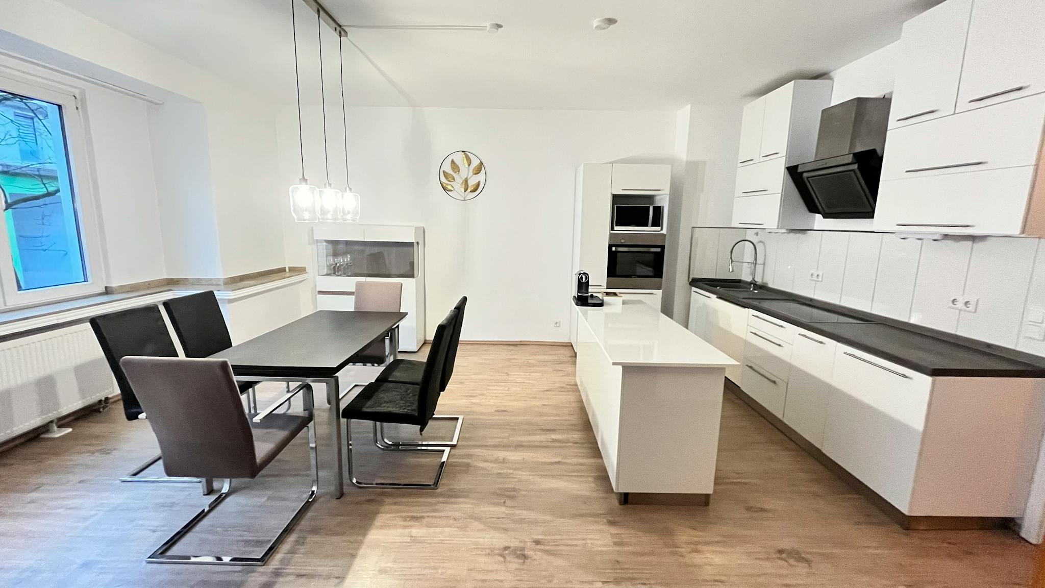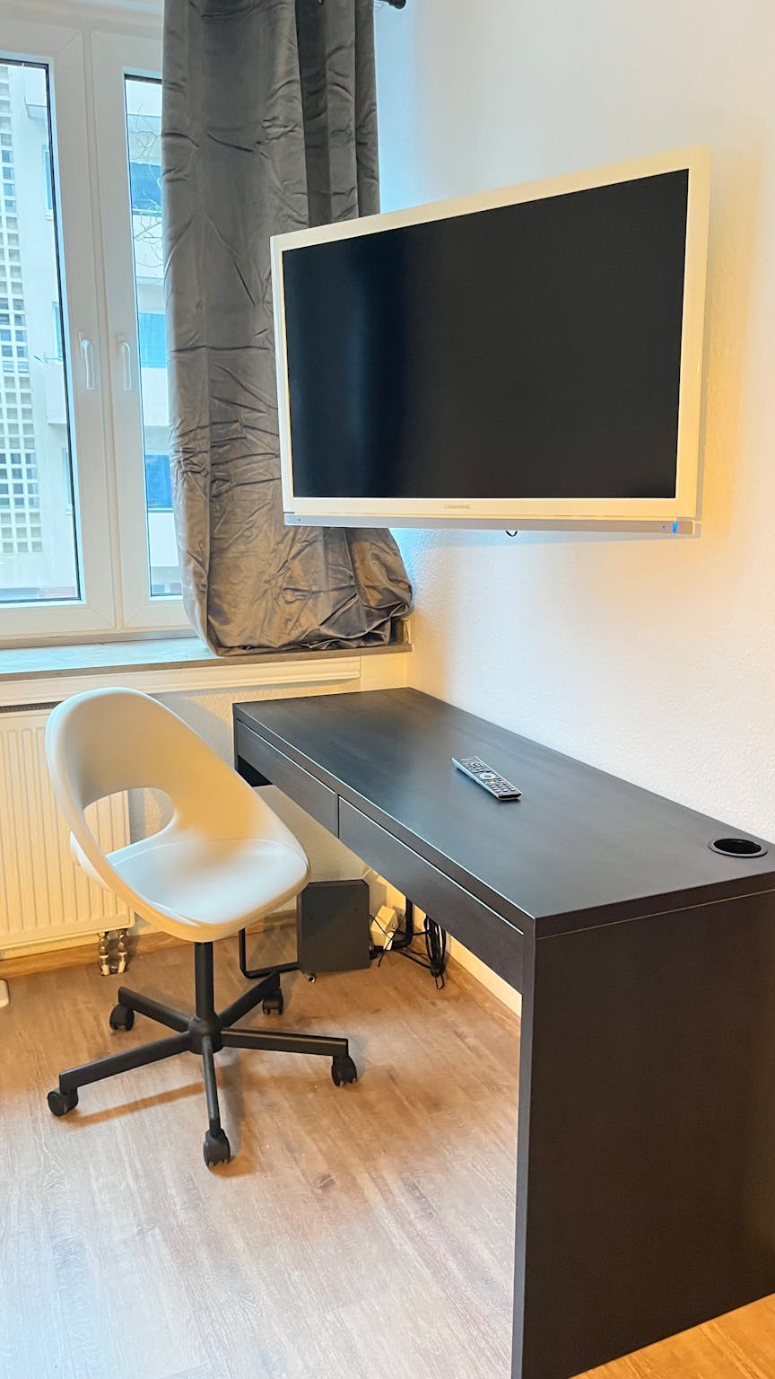 Spacious 105sqm apartment, flooded with natural light, featuring 3 rooms, kitchen, and a modern shower bath. Ample on-site parking available. Extremely centrally located in Düsseldorf, adjacent to a nice looking park. All daily necessities within walking distance, excellent public transport connections. First floor, completely newly furnished with 3 TVs, 3 double beds, kitchen, dining room, 1.000 Mbit internet in every room.