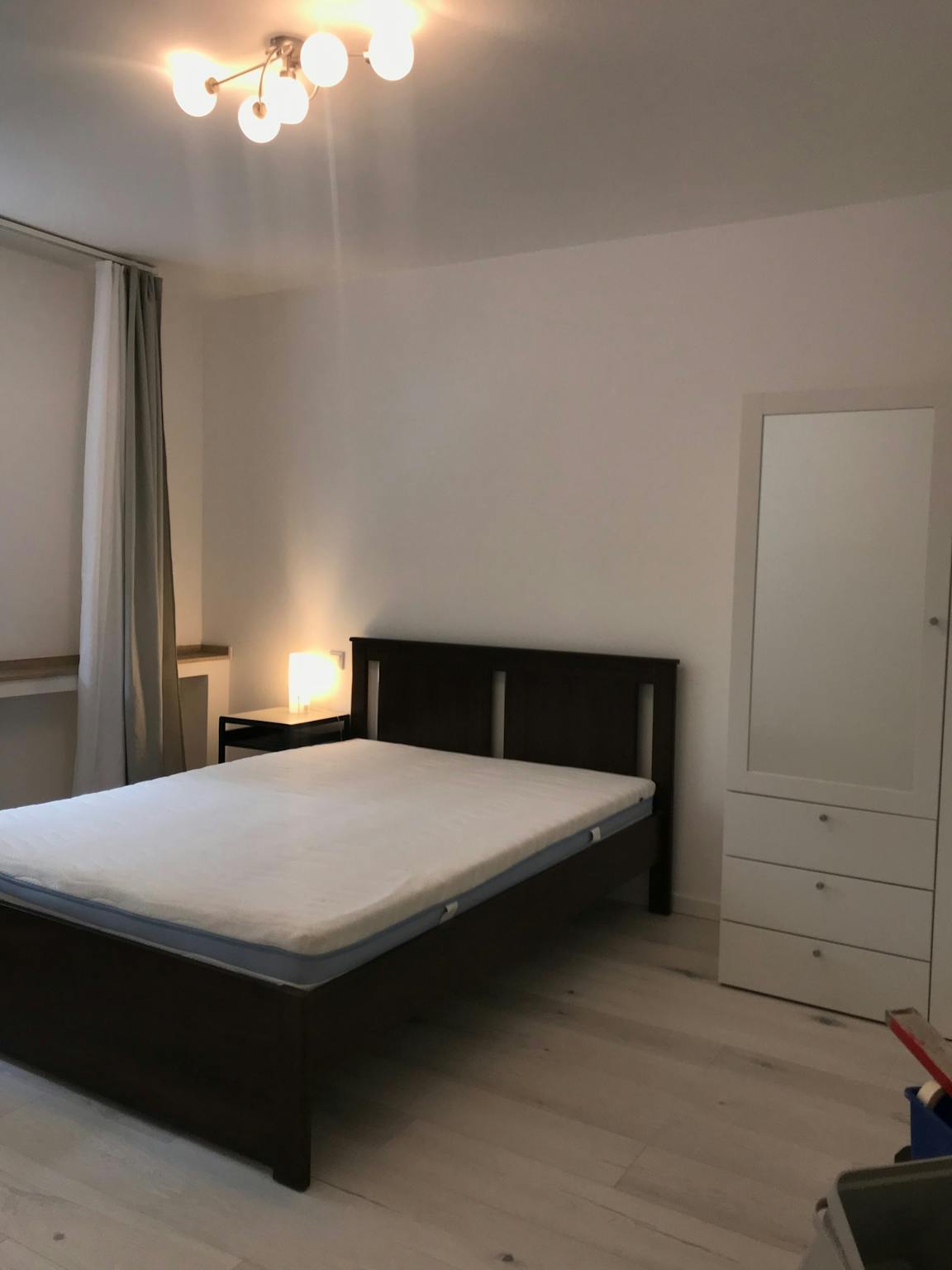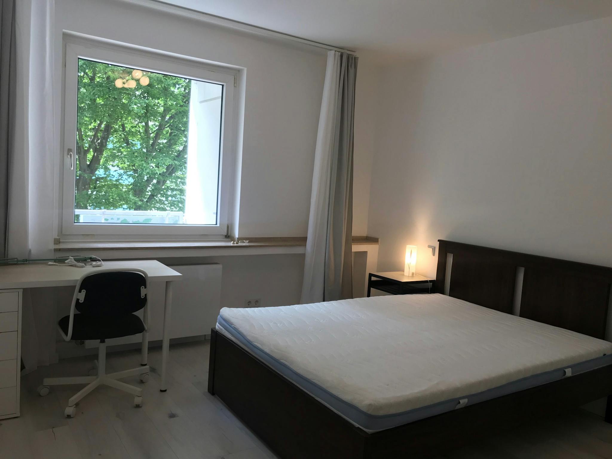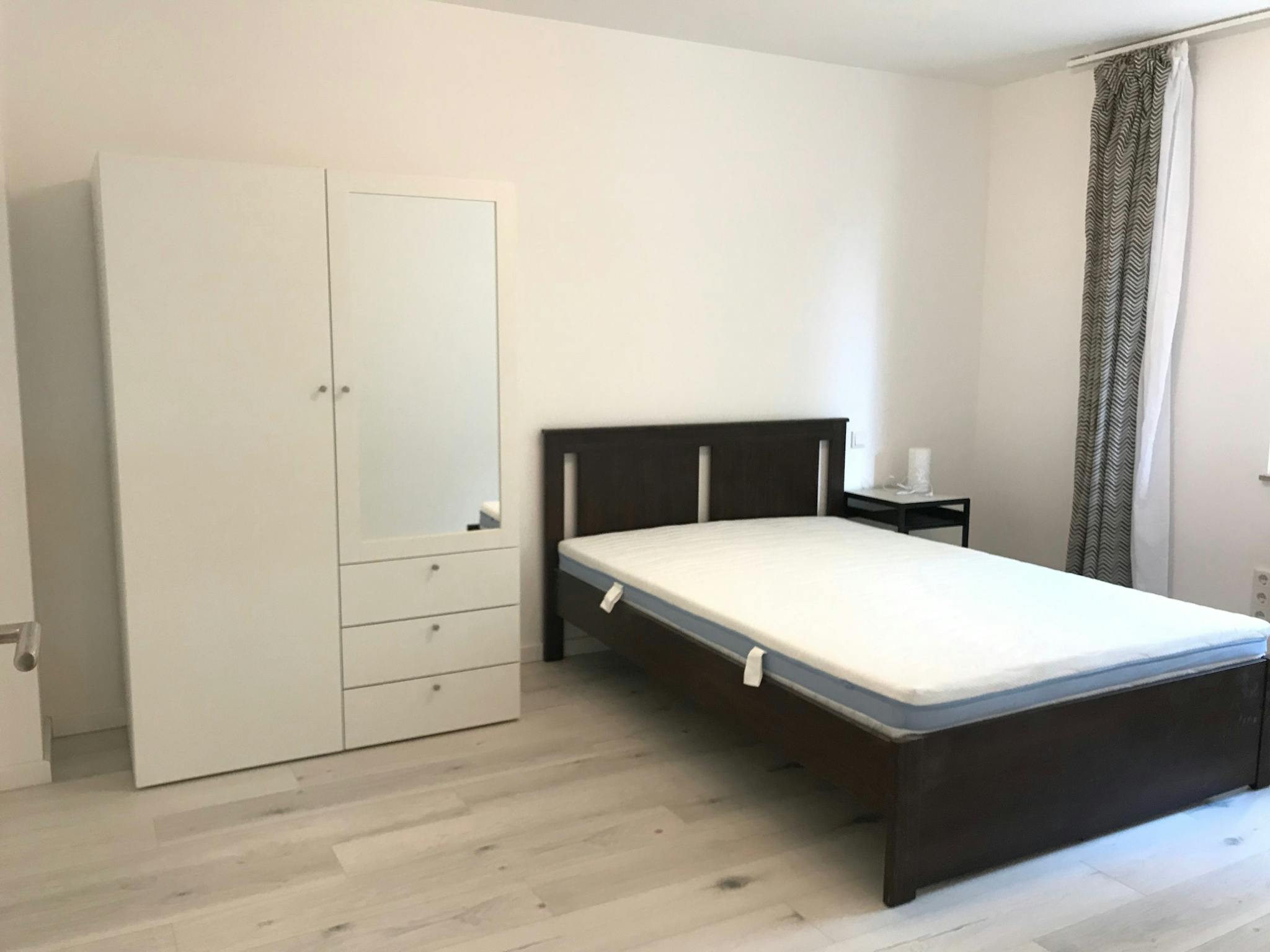 Die Zimmer sind alle groß und komplett neu renoviert und möbliert. Es gibt zwei Schlafräume, die jeweils mit einem 1,40 m Bett, Kleiderschrank, Regal und Schreibtisch, Stuhl, Lampen und Gardinen ausgestattet sind.