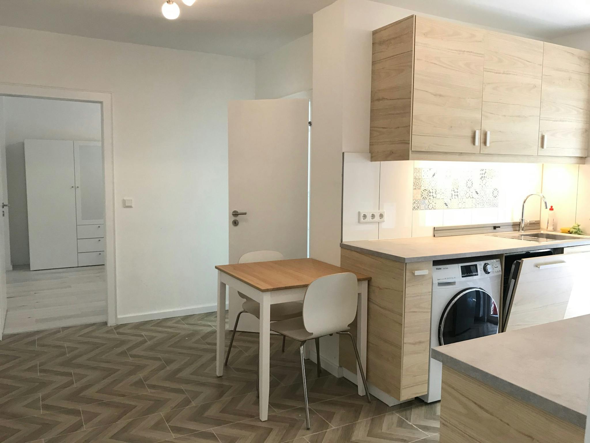 Alle nötigen Alltagsgegenstände sowie Internet sind in der Wohnung und Küche enthalten, so dass man direkt mit Koffer einziehen kann.