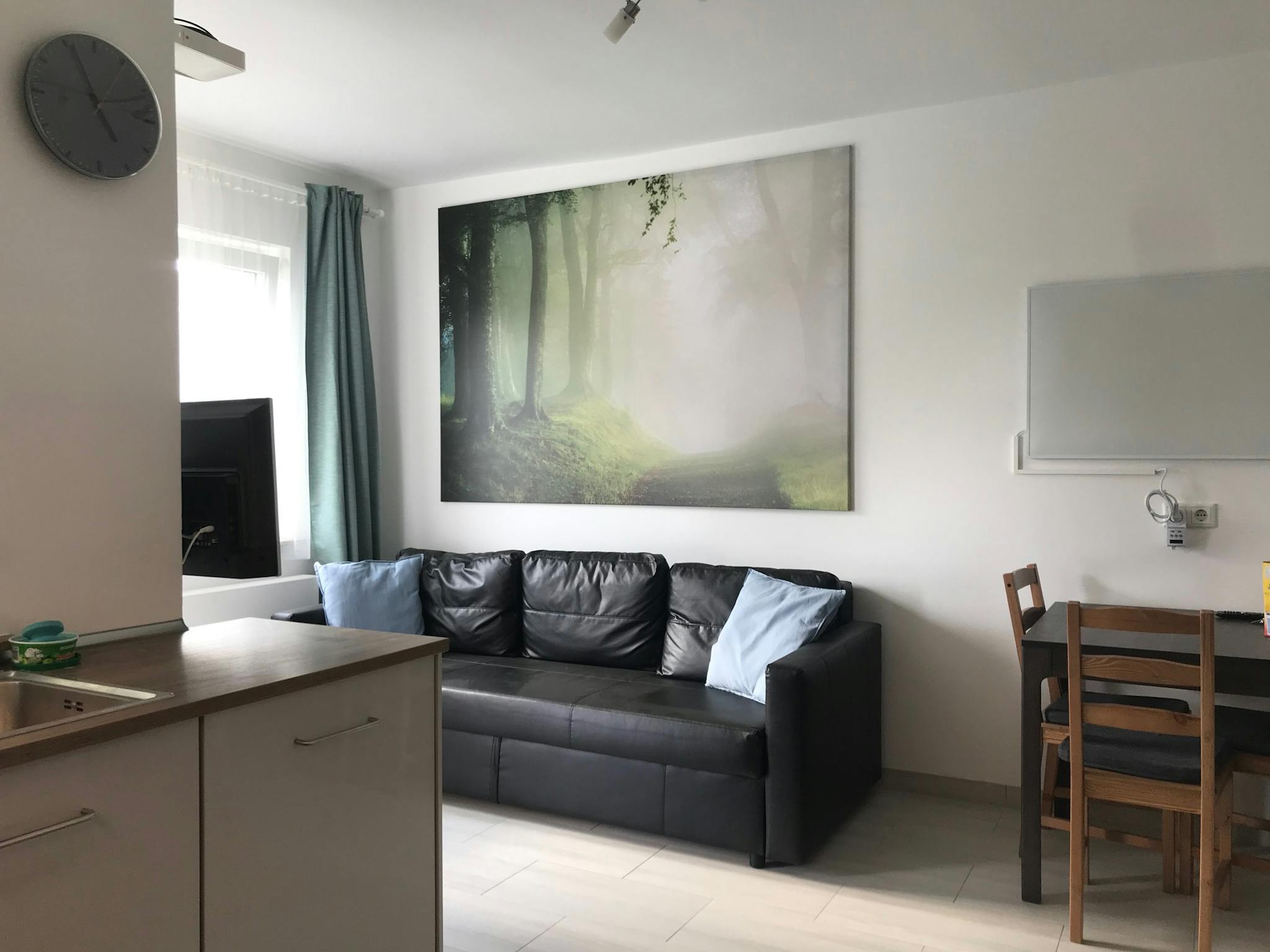 This apartment can be used for two individuals as a shared apartment or would also fit perfectly for a couple orfamily. The two rooms are individually lockable. The kitchen and living area serve as the center of the apartment with a nice couch and TV area to relax. It serves as a open kitchen anliv. The balcony is faced to the garden side and is thus very calm and gives a green view.