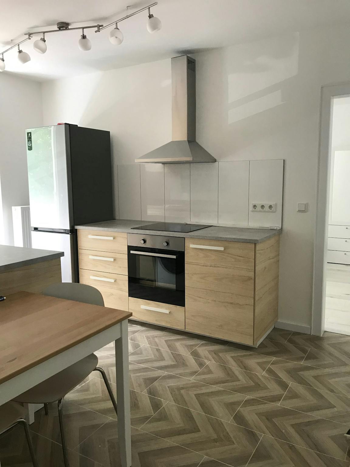 The kitchen is a new fully integrated kitchen with all neccessary tools and machines: washing machine, dish washer, coffee machine, etc., just to mention a few.