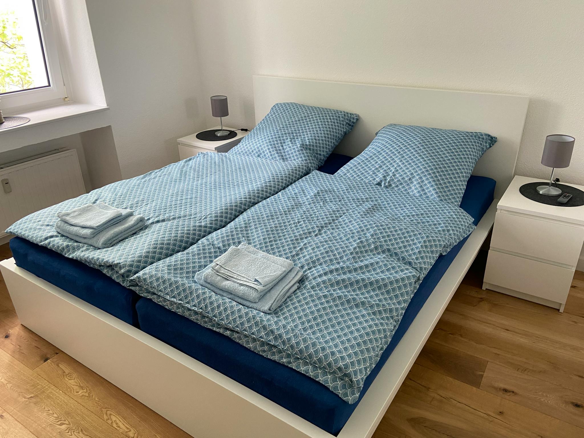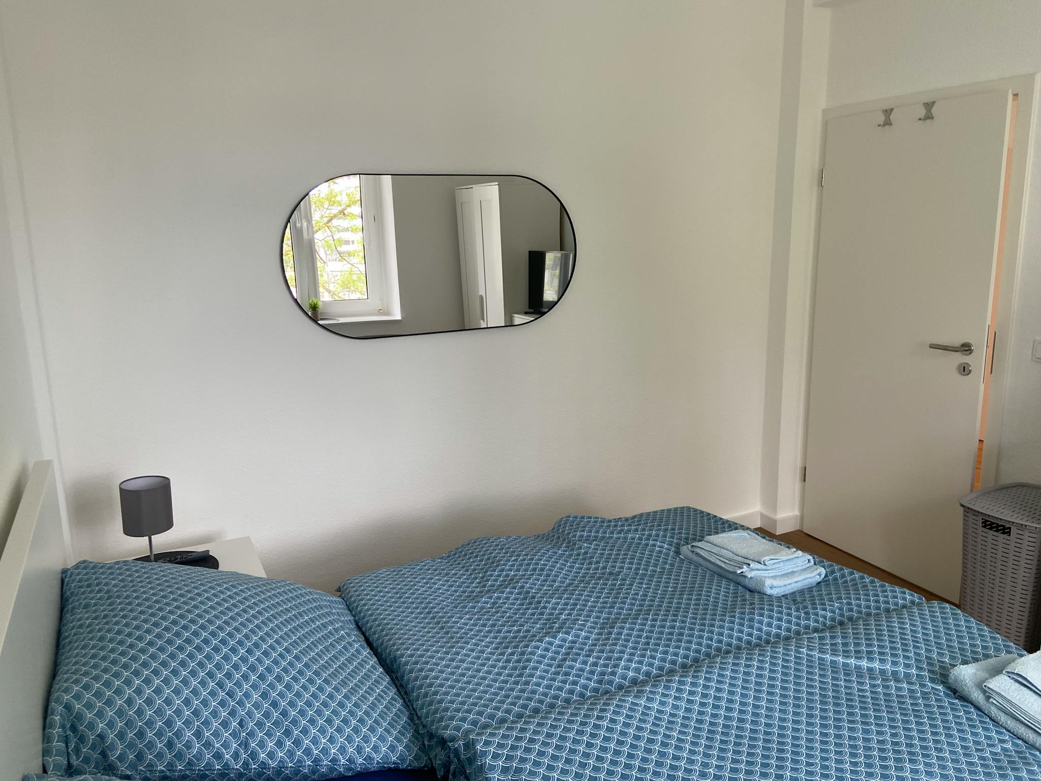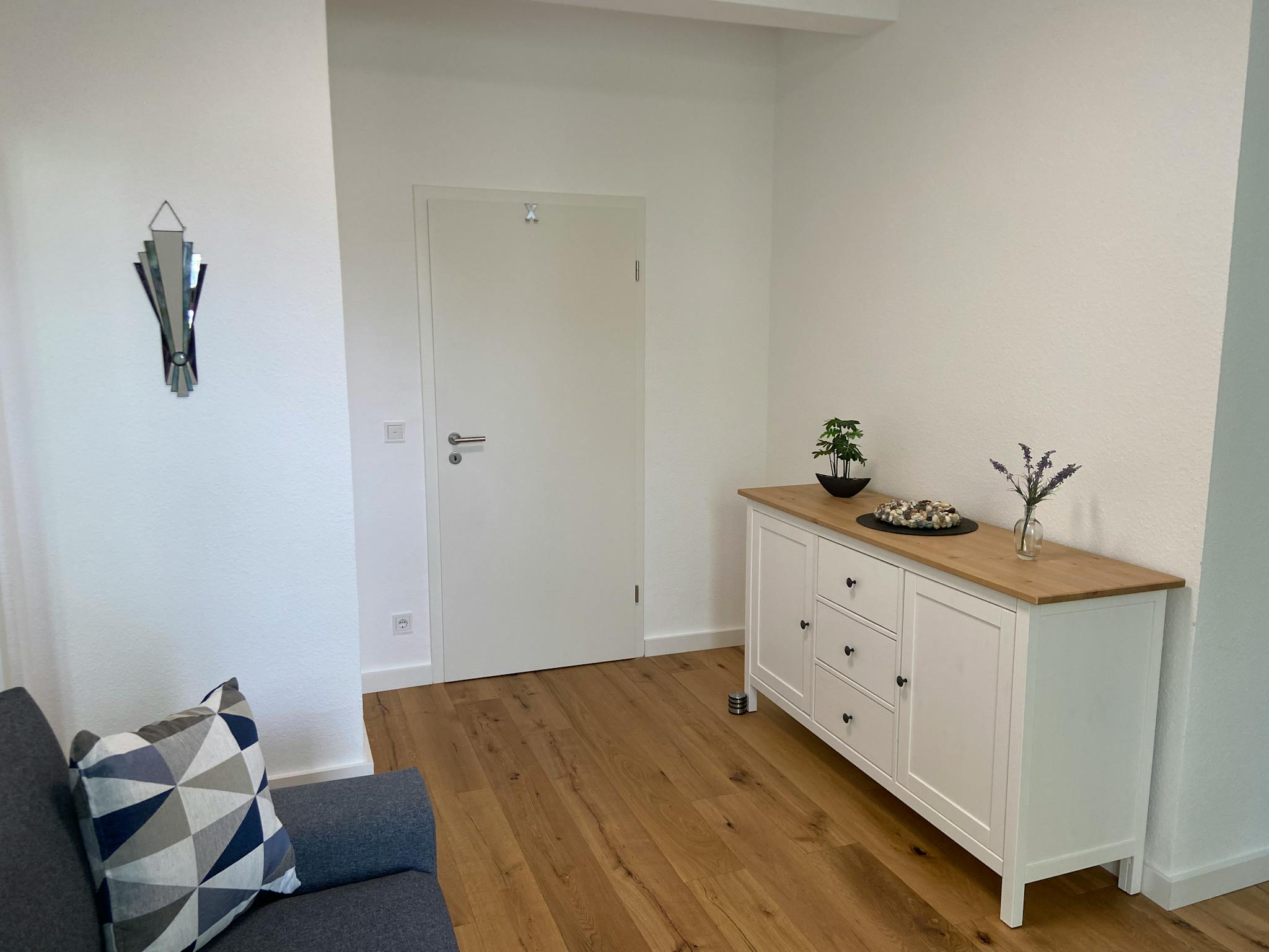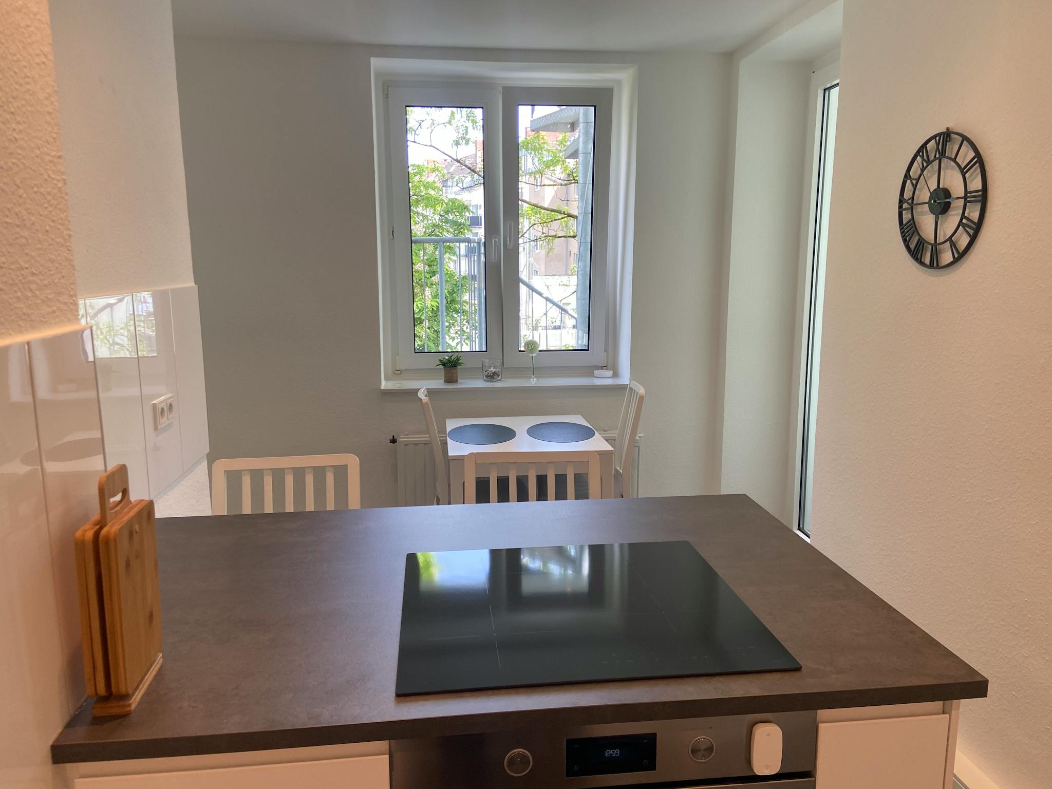 2 Zimmerwohnung mit Schlafzimmer, Wohnzimmer und vollausgestatteter Küche mit Anschluss an einen Balkon
