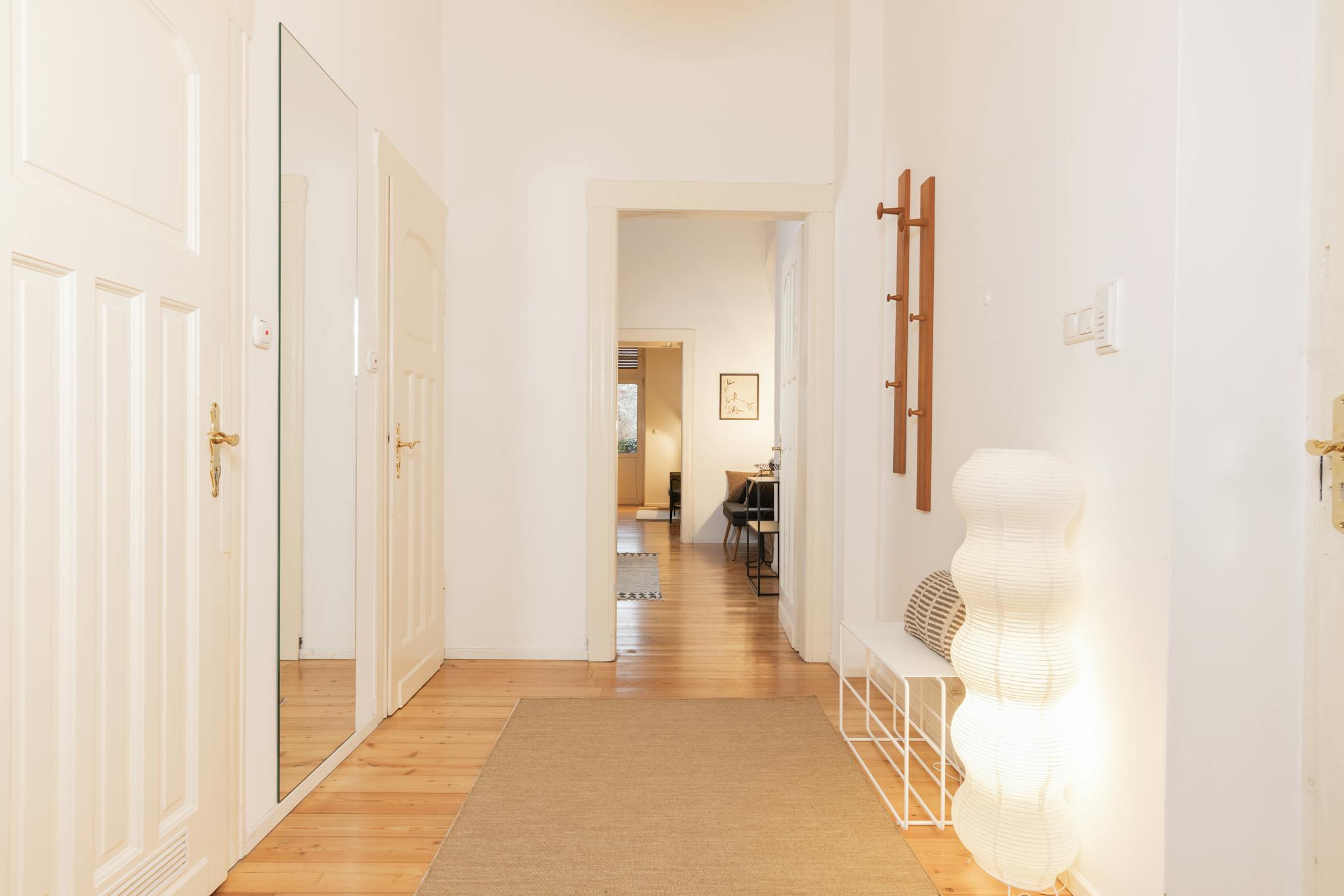 Über die Diele gelangt man ins Schlafzimmer, zu den Bädern als auch in die Küche.