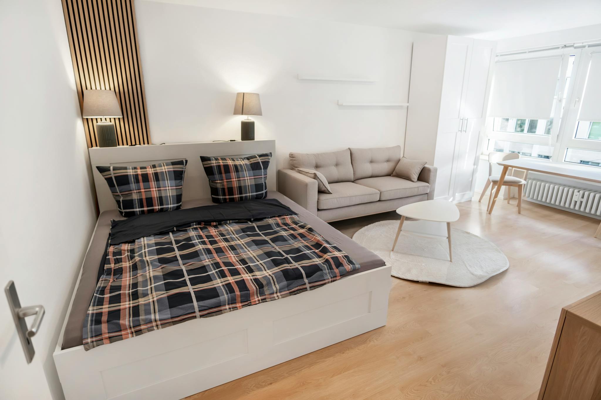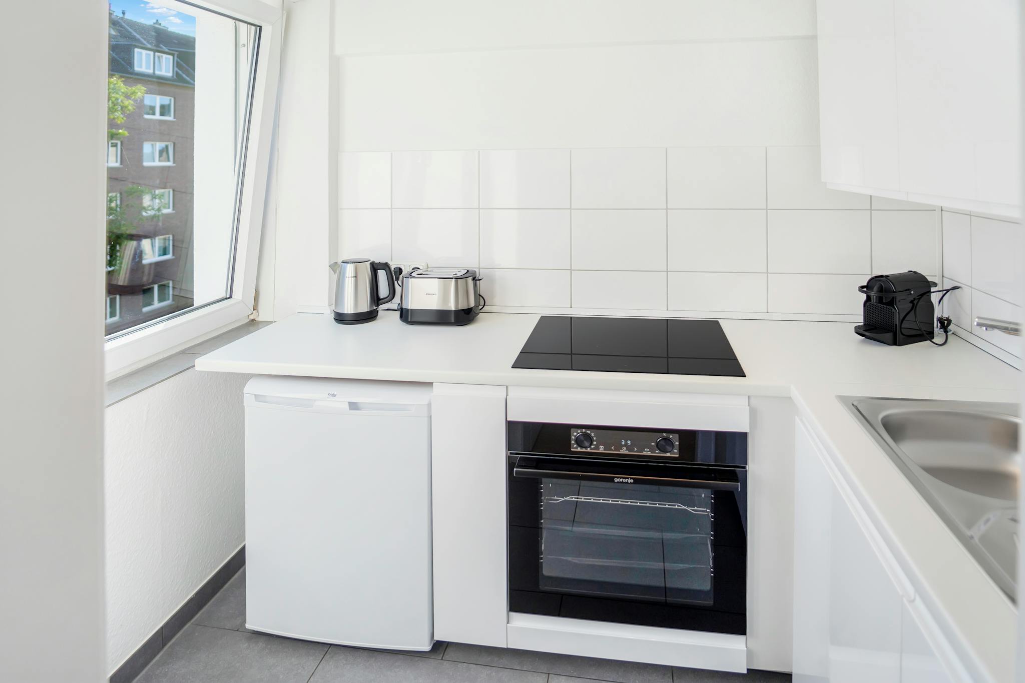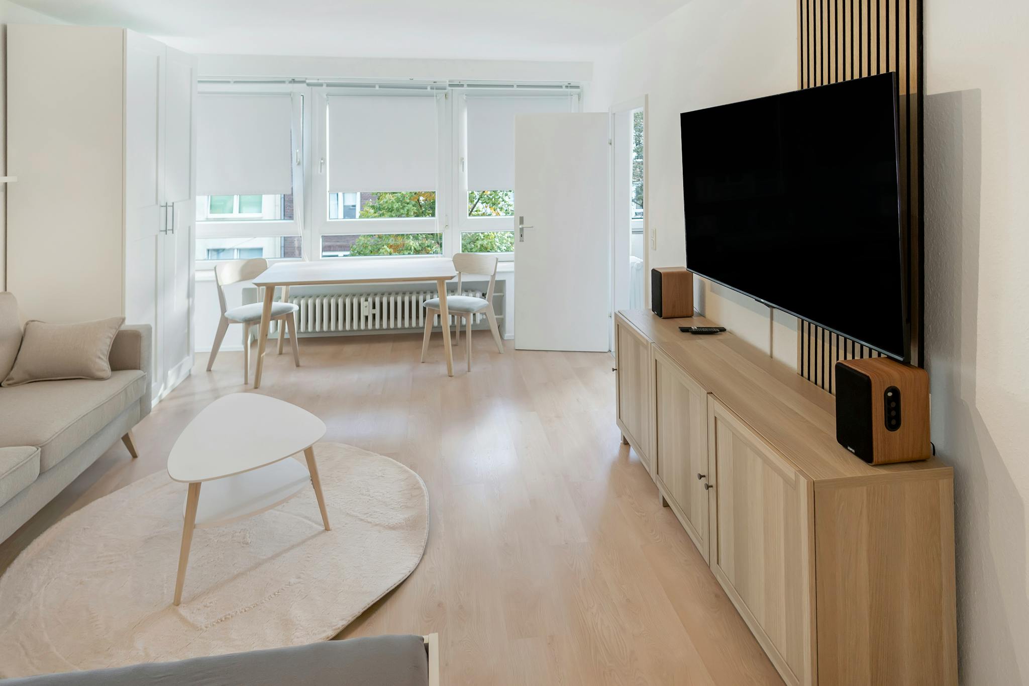 Das Apartment ist geräumig und sehr hell, es bietet genügend Platz für bis zu zwei Personen. Die Ausstattung ist umfangreich und sehr hochwertig. Die Wohnung wurde im August 2025 vollständig renoviert und neu möbliert. Die Lage der Wohnung mitten in dem sehr attraktiven Stadtteil Unterbilk ist absolut hervorragend - zahlreiche Geschäfte, Supermärkte, Cafés und Restaurants, sowie öffentliche Verkehrsmittel befinden in der unmittelbaren Umgebung und sind fussläufig zu erreichen.