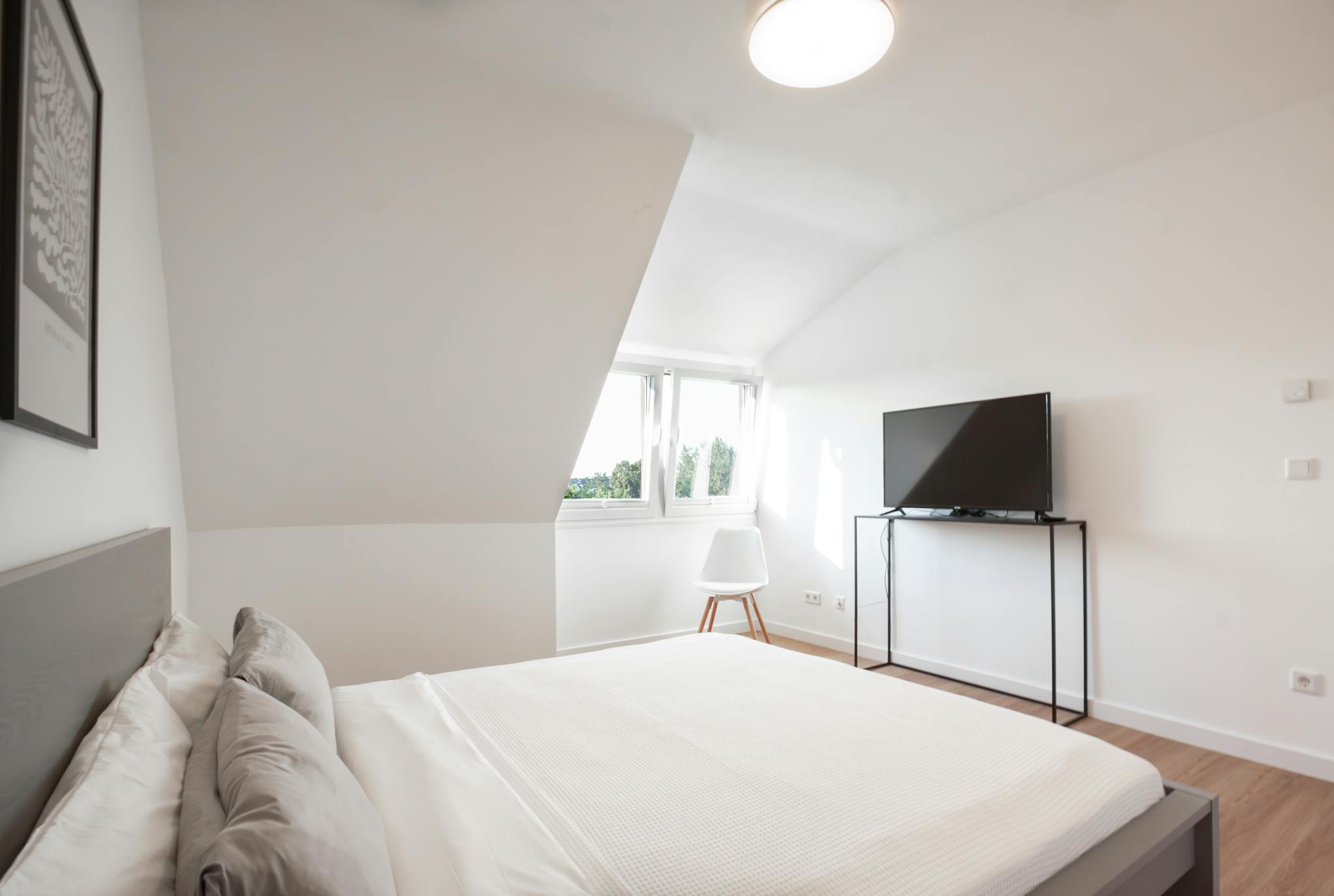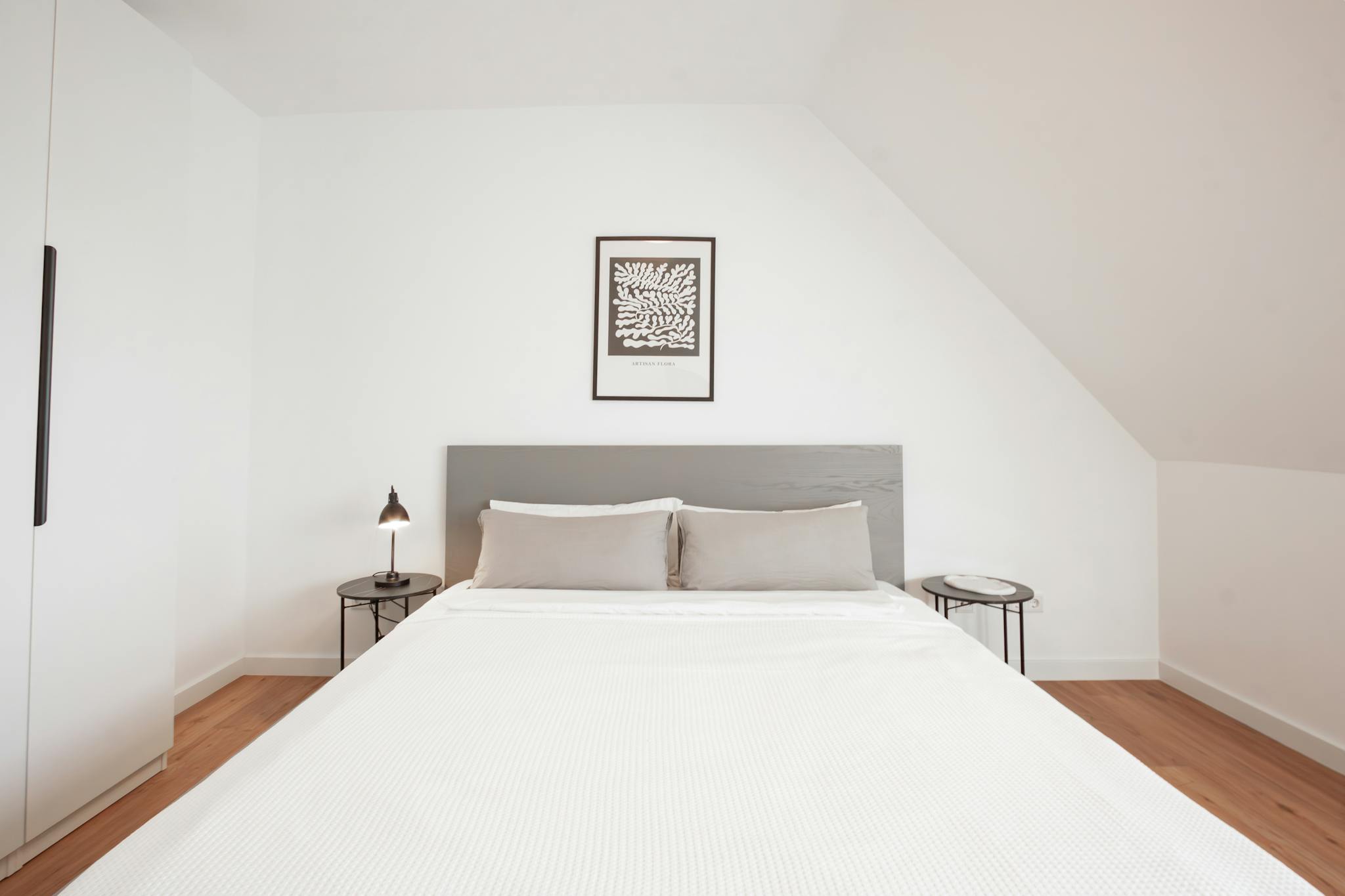 Das Schlafzimmer verfügt über ein 180er Bett und das Gäste.-Kinderzimmer über ein 140er Bett.