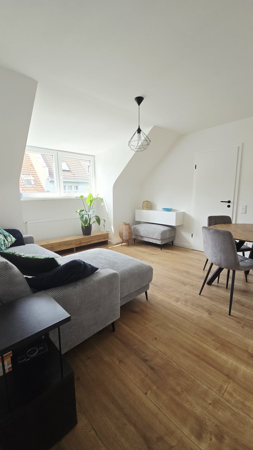 Non-SmokingNot allowed📍 Address: Gilbachstraße , 40219 Düsseldorf 🌟 Top location – just 1 minute walk to the heart of Medienhafen, surrounded by stunning modern architecture, stylish cafés and waterfront views. ________________________________________ 🏠 The Space: 60 m2 of Pure Comfort • Spacious living room with cozy sofa, dining nook, designer lighting • Quiet bedroom facing a green courtyard – perfect for deep sleep • Dedicated office with ergonomic desk – ideal for remote work • Contemporary bathroom with walk-in rain shower and LED mirror • Fully furnished designer kitchen: oven, stove, dishwasher, washing machine • High quality vinyl flooring, clean white walls, fresh renovation • Optional private garage available in-house • High speed Wi Fi & all utilities included ________________________________________ 🌍 Location & Transport • 1-minute stroll to Medienhafen – Gehry buildings, Rheinturm, riverside restaurants & bars • 1 min walk to bus/tram stop: lines 707, 732, 723, 726 – connect you to Hauptbahnhof in ~10 minutes • Excellent car access to A52, A46, A57, and only ~15 min to DUS airport ________________________________________ 🌿 Why You'll Love It • Live in a vibrant cultural & business hub, steps from creative agencies and coworking spaces • Have peaceful downtime in a green courtyard setting • Perfect for expats, professionals, consultants, or digital nomads • Experience both city energy and quiet comfort #DüsseldorfApartment #MedienhafenStyle #FurnishedLiving #GreenView #QuietStreet #DesignInterior #ExpatsWelcome #HomeOfficeReady #CityCalmBalance