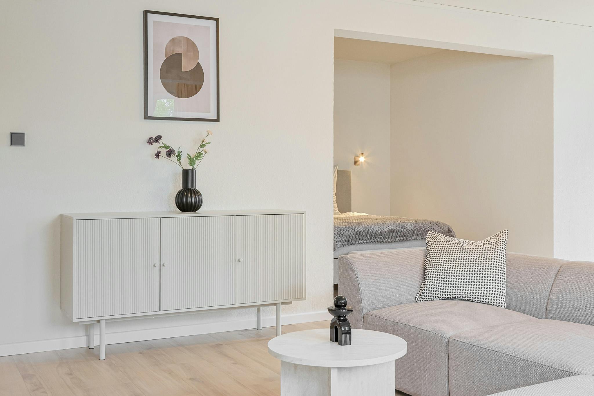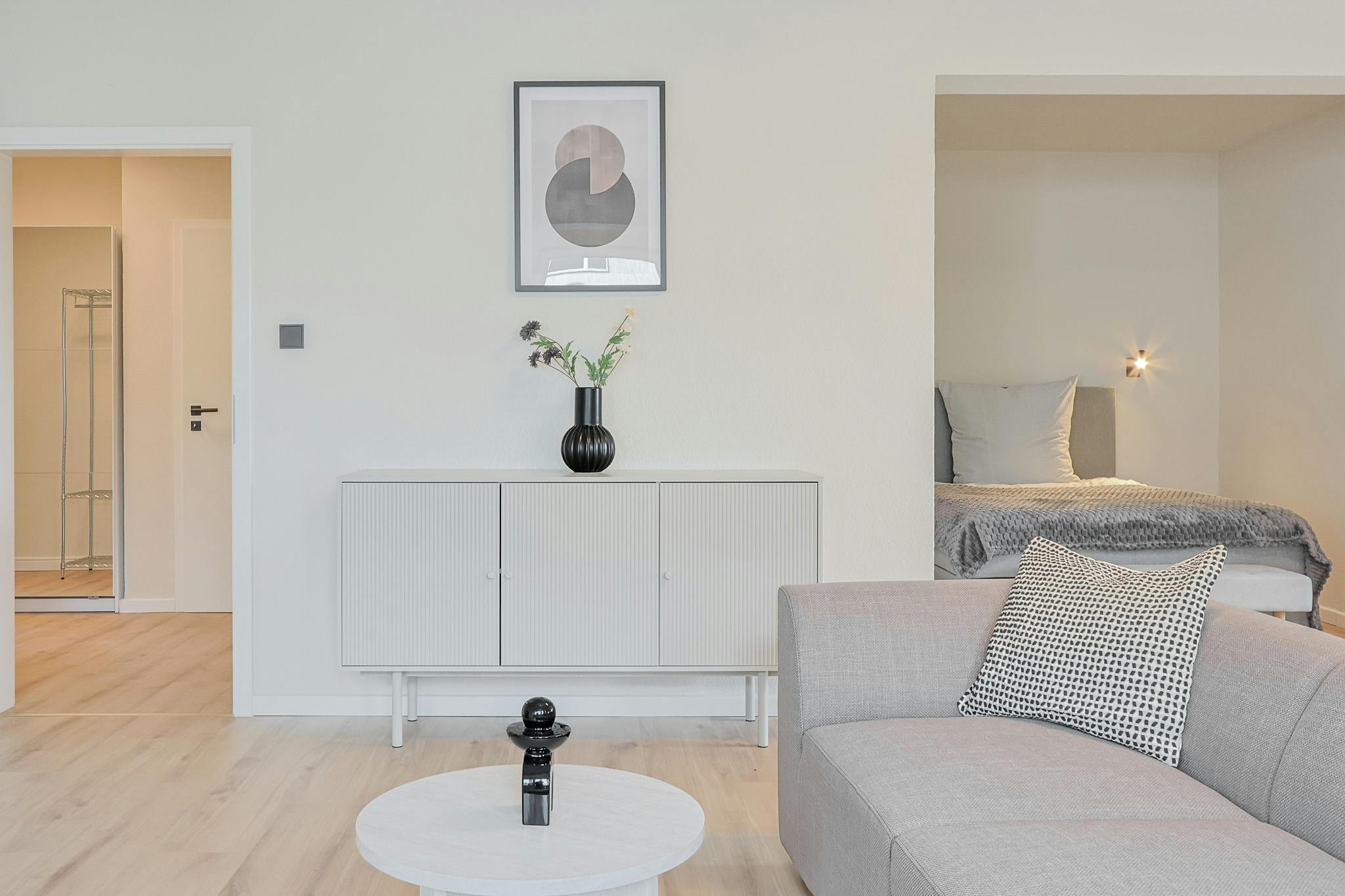 Moderne Wohnaccessiors runden das Gesamtbild dieser Wohnung ab.