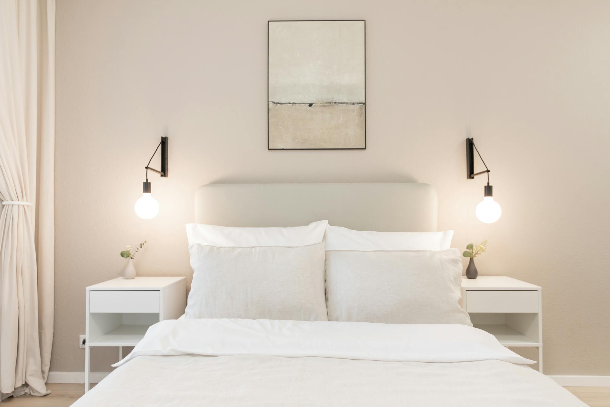 Die Wohnung ist komplett ausgestattet mit einer Waschmaschine, Küchenutensilien, Kühlschrank, Kaffeemaschine, Bügeleisen mit Bügelbrett, Handtücher, Bettwäsche mit Kissen und Decke, Tagesdecke sowie vielen weiteren Dinge für den Alltag.