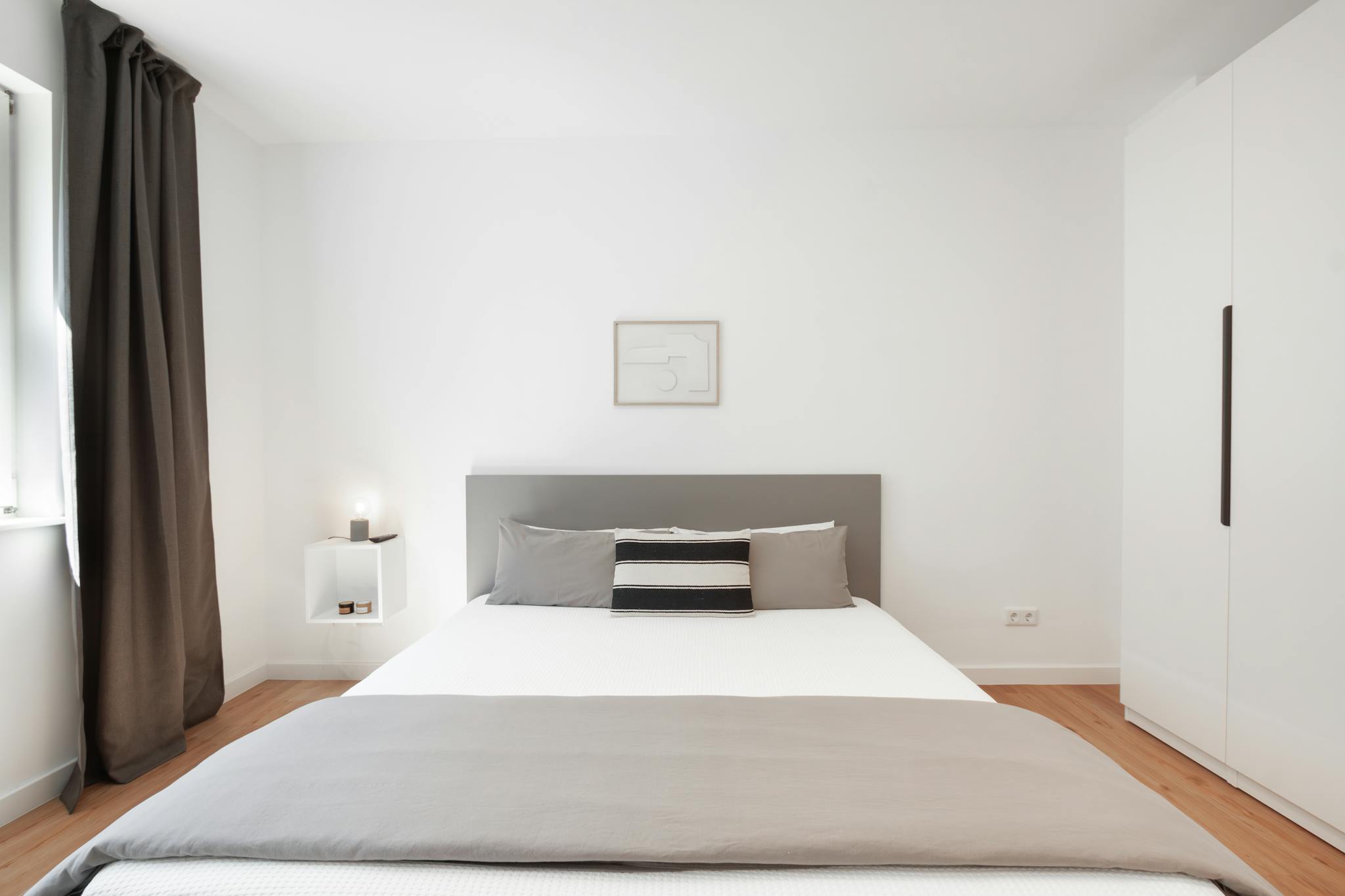 Das Schlafzimmer verfügt über ein 160er Bett und einem geräumigen Kleiderschrank.