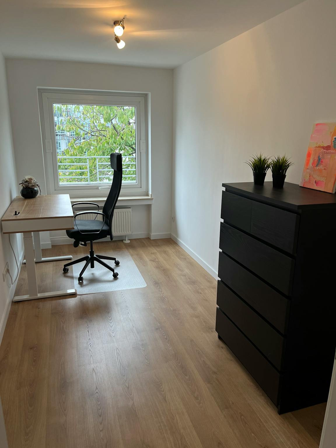 Des weiteren verfügt die Wohnung über ein voll ausgestattetes Büro mit Höhenverstellbaren Schreibtisch und einem Bürostuhl.