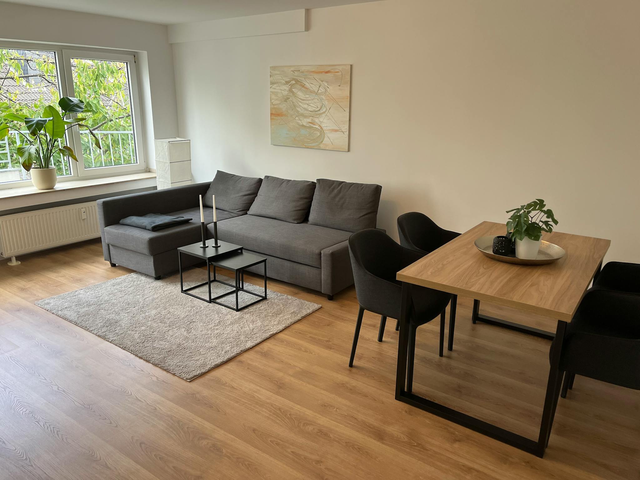 Weiter im Wohnzimmer befindet sich ein Esstisch mit 4 Stühlen sowie einer gemütliche Couch. Vom Wohnzimmer und vom Gästezimmer aus gelangen Sie zum Highlight in der Wohnung.