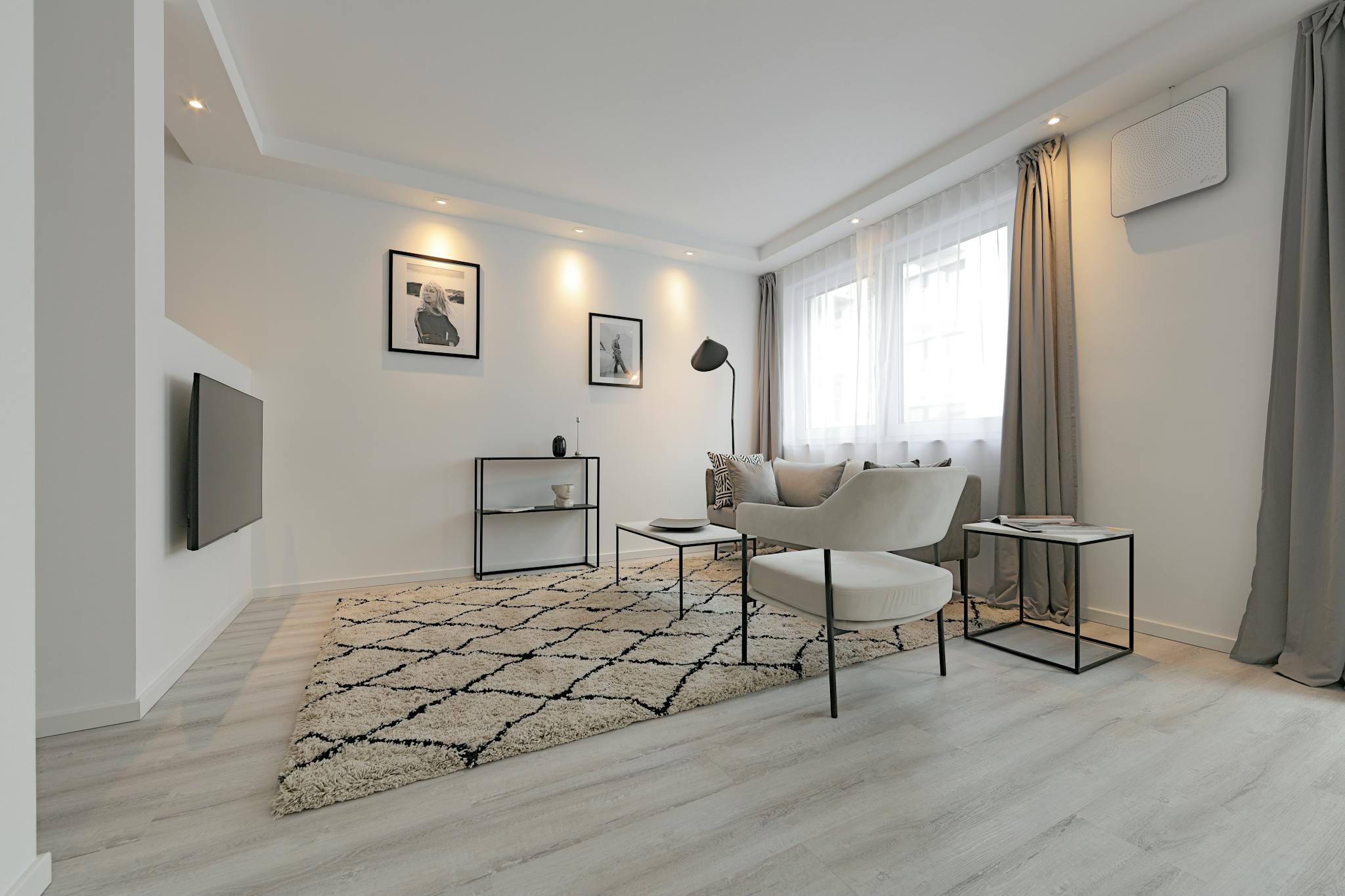 Glamorous in a black, white and grey look with clean lines, super comfortable. The high-quality furnished flat is ideal for 1 or 2 people.