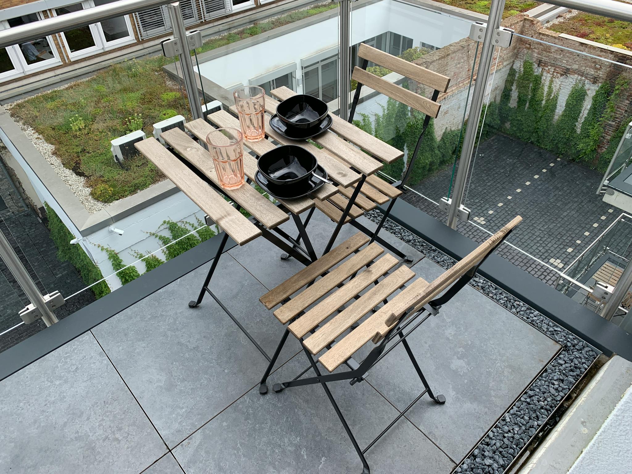 2 large smart TVs, WLAN with fast internet, workstation by the window with view to the inner courtyard, balcony with table and 2 chairs.