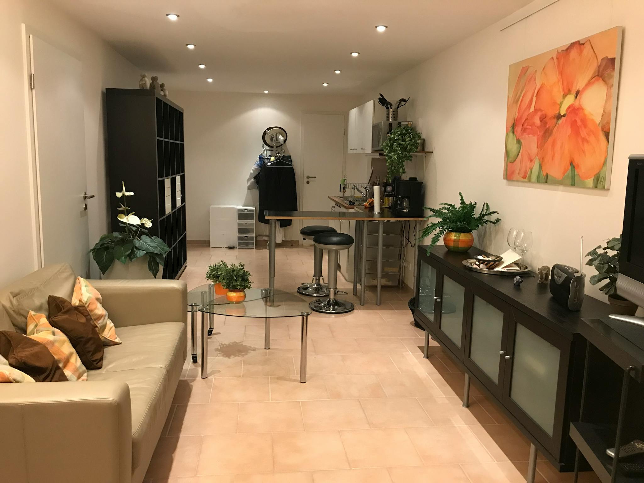 Neu renoviertes Einraum-Nichtraucher-Apartment ca. 35 m2 mit offener Küche inkl. Esstheke, Office-Bereich, Wohn- und Schlafbereich, separates Bad.