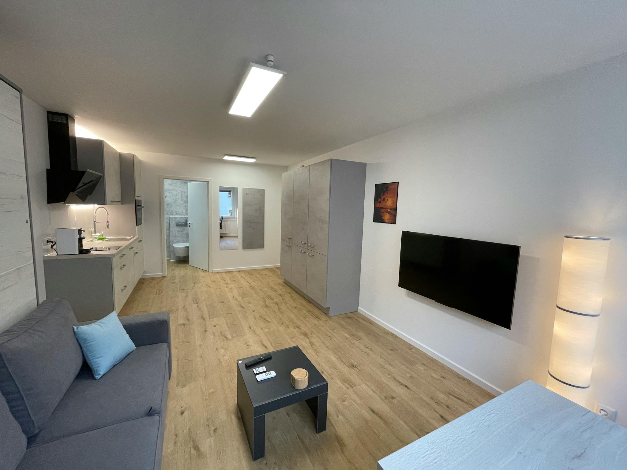 Das Apartment verfügt über ein komfortablen Wohn- und Schlafbereich mit Designer Couch. Die große Küche und der Esstisch mit zwei Stühlen bieten auch Platz für zwei. Neben einem großen Kleiderschrank und vielen Regalen gibt es einen Flatscreen Smart TV. Die Küche verfügt über ein Cerankochfeld, integrierte Kühlgefrierkombi, Backofen, Oberschränke und geräumigen Schubladenschrank, etc.