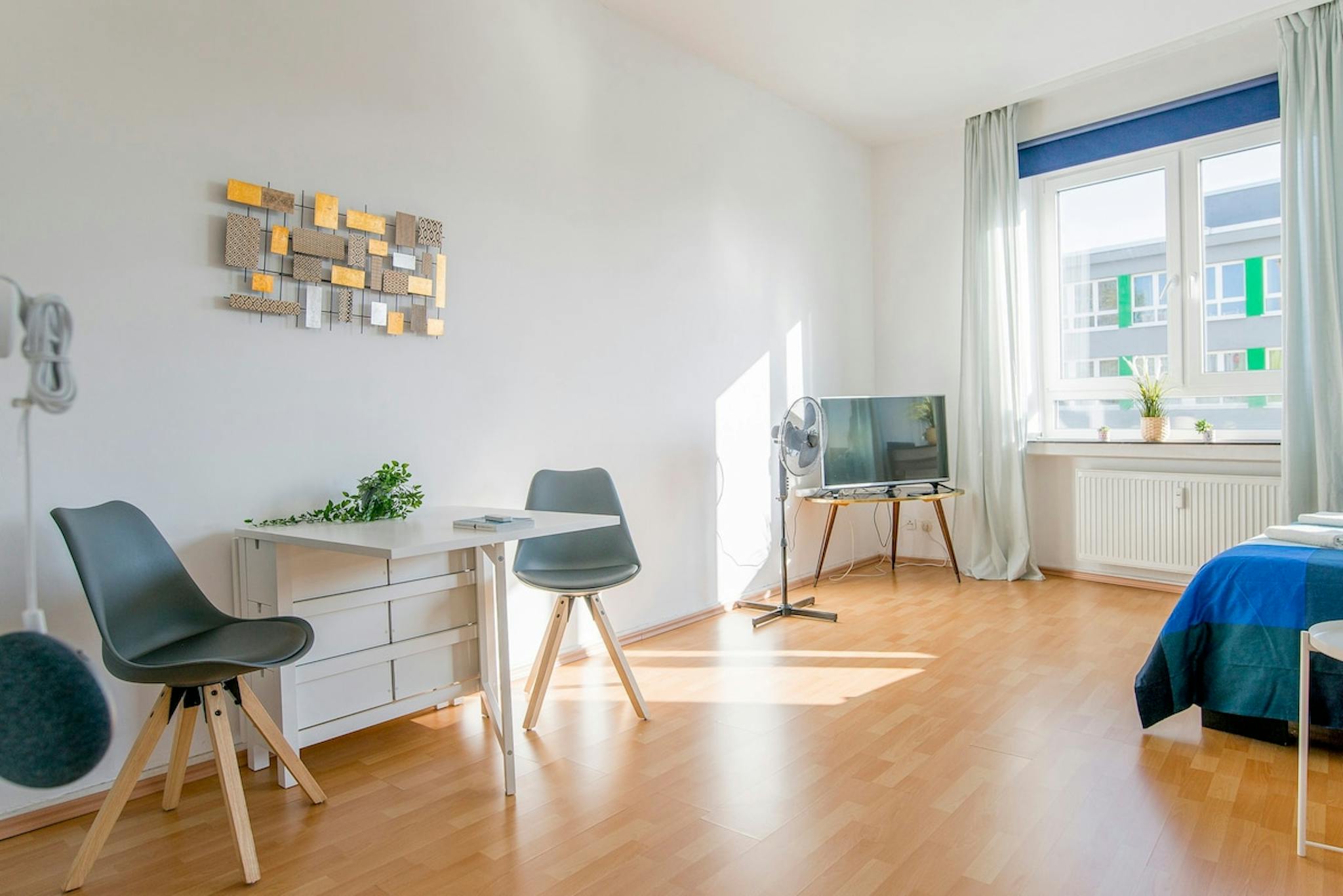 Non-SmokingNot allowedCity Apartment Ideal for Accommodation in Düsseldorf. It is very close to the main train station. A big supermarket is just around the corner. The apartment is perfectly equipped for this purpose. It is well-lit, not only through two large windows but also with excellent interior lighting. Additionally, it features a high-quality television for relaxing moments. Internet connection is available. The apartment also contains everything you need, not only for cooking but also for coffee, tea, or a romantic evening.