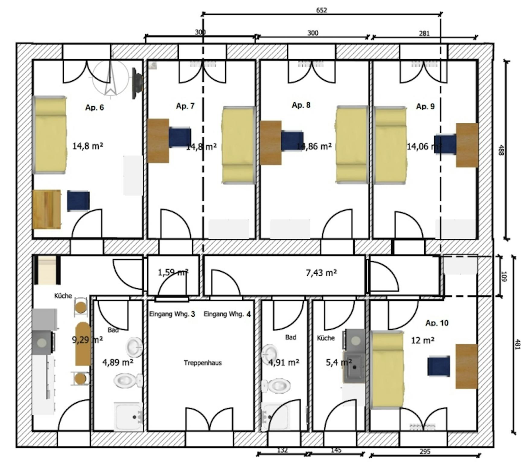 65 m2Bedrooms