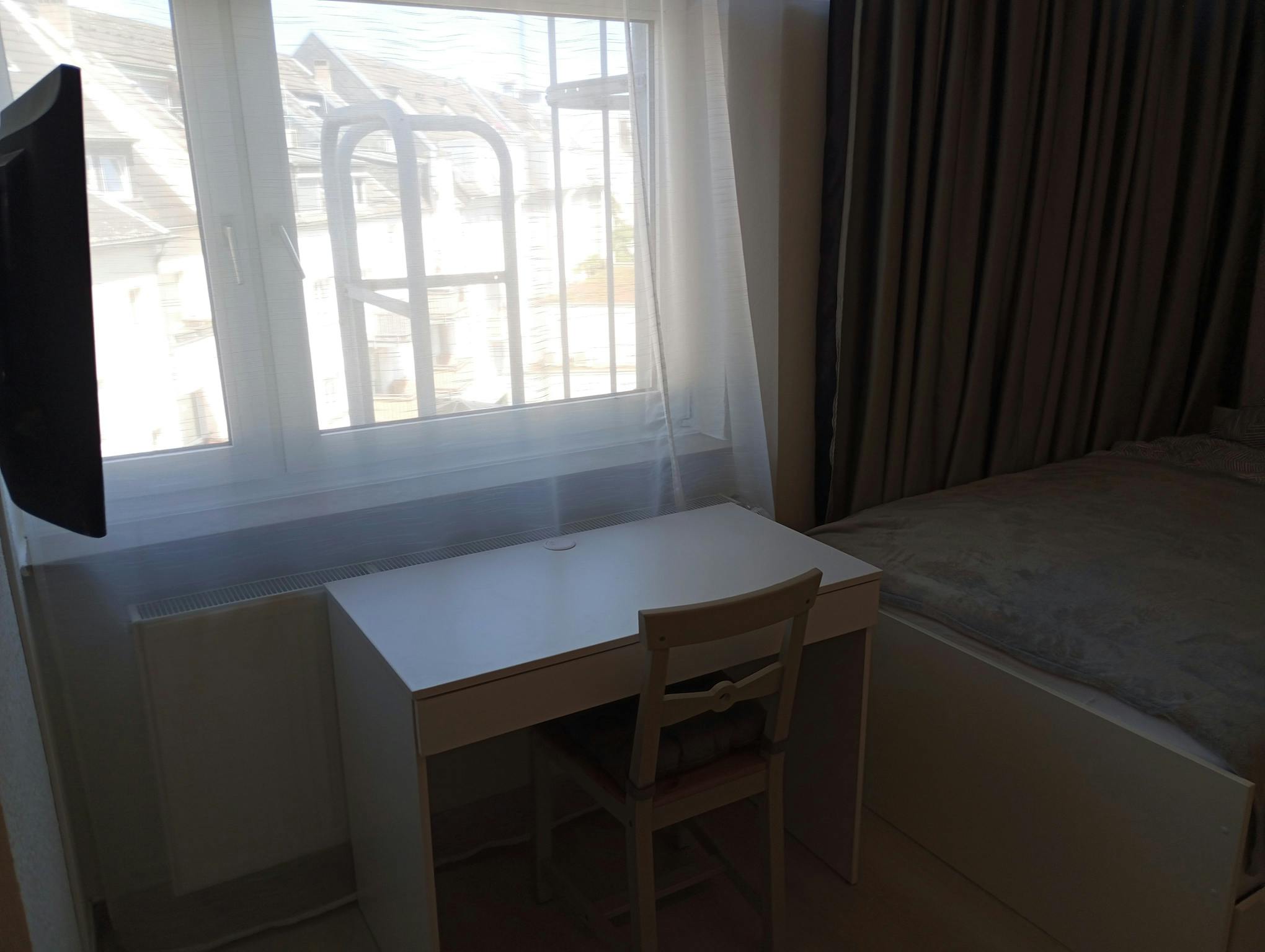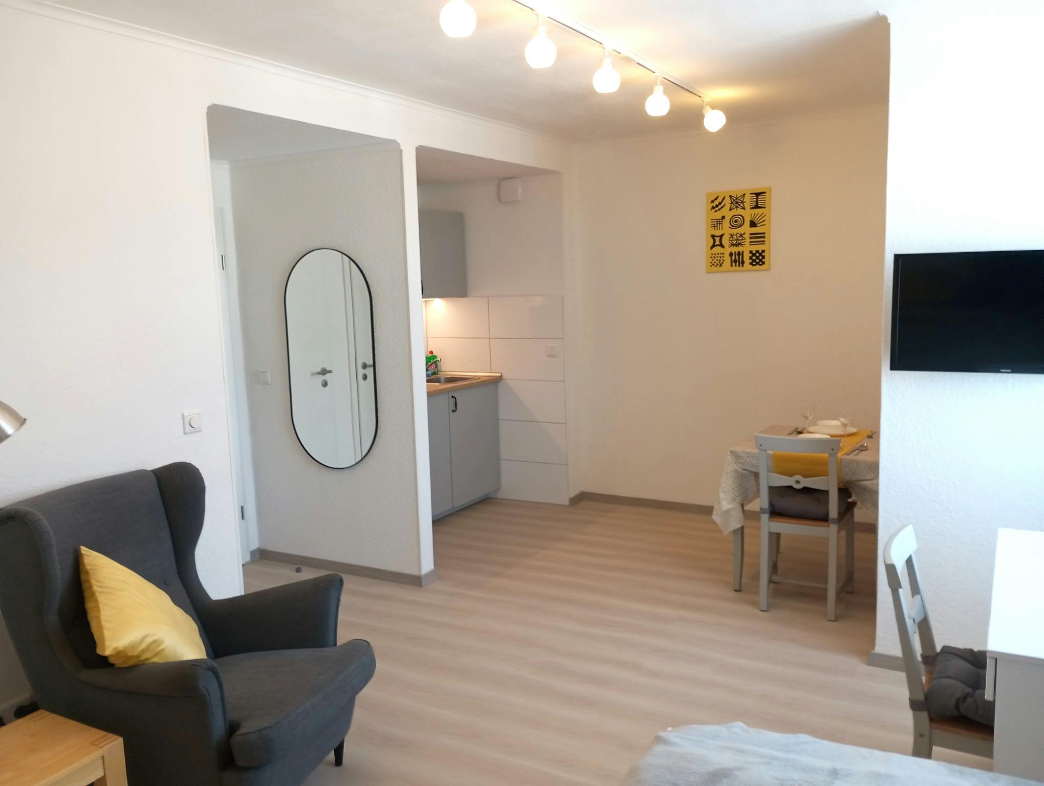 Das Apartment befindet sich im 4. Stock zum Innenhof (ein Aufzug vorhanden) und ist komplett ausgestattet. Das Bett 120 cm, ein Arbeitsplatz für Homeoffice, WLAN, dimmbare Beleuchtung, Waschmaschine im Badezimmer. Selbstverständlich Bettwäsche, Handtücher, Geschirr u.v.m.