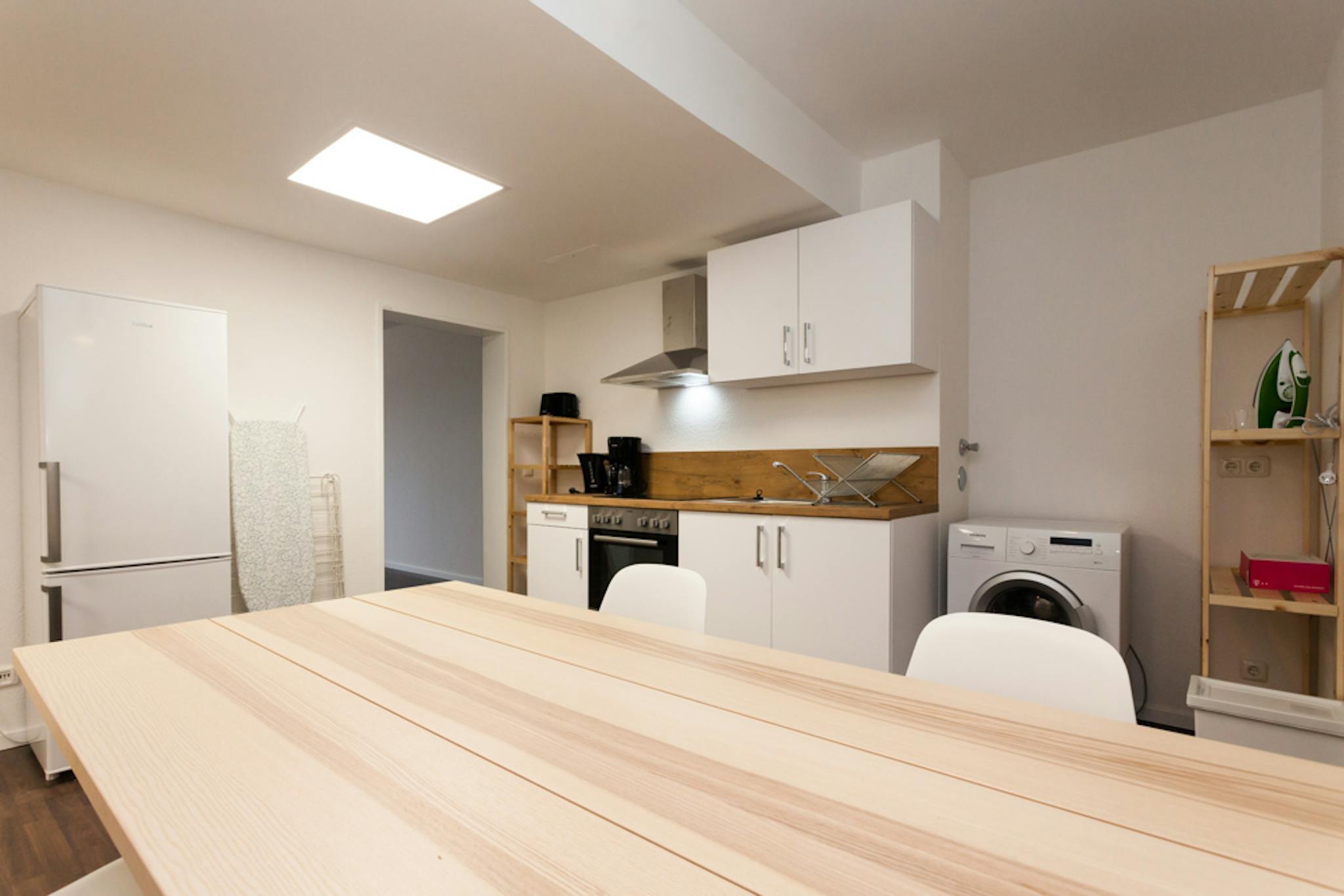 ROOM Our flats fulfil all your daily living requirements. Every flat comes readily equipped with a kitchen, including refrigerator, cooking equipment and dishes. Flats also include a washing machine and Wi-Fi Internet. Each room is fully furnished and offers a comfortable bed with fresh linen and a workspace. The area provides you with several shopping opportunities and excellent connections to public transport.