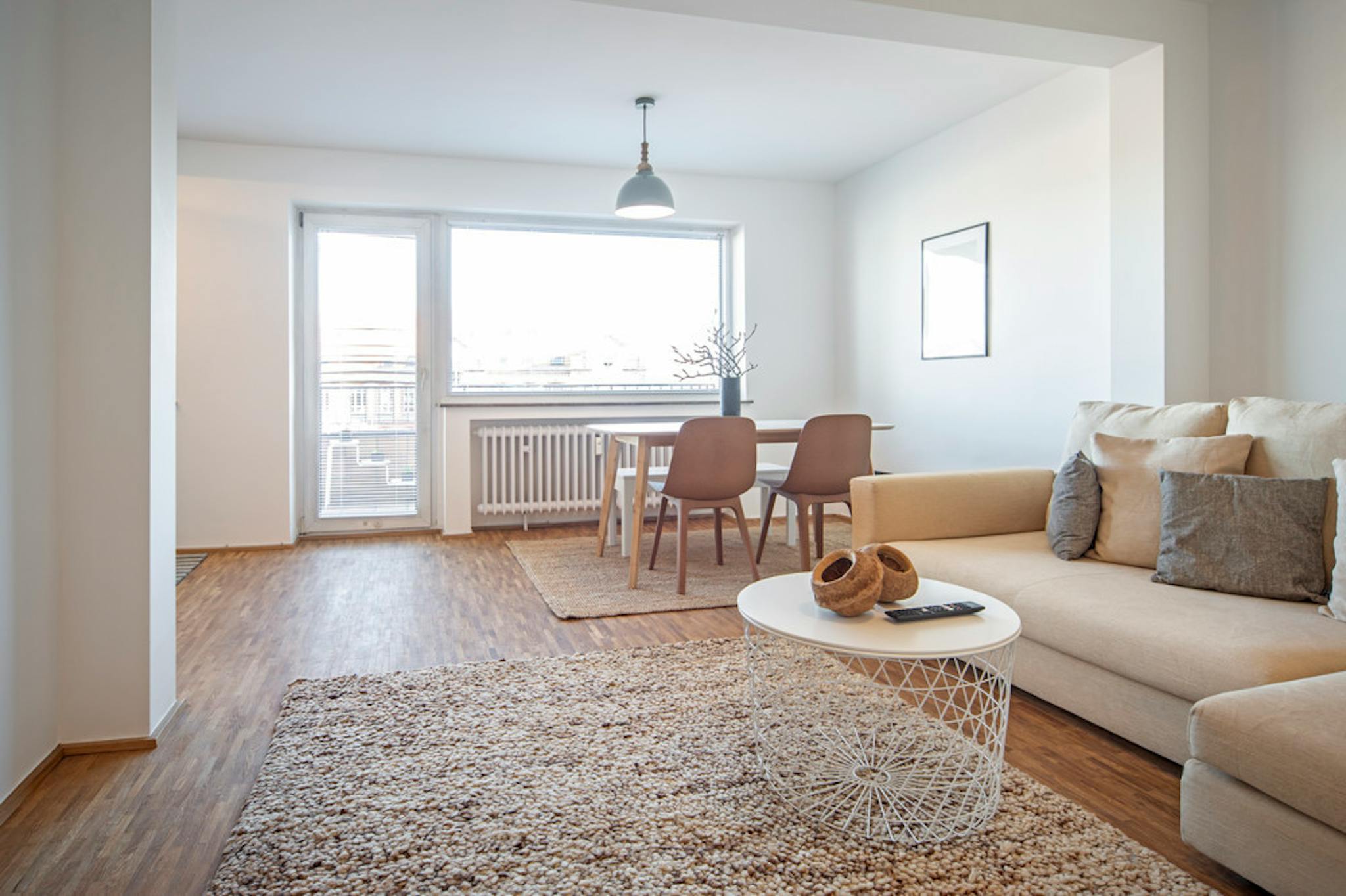 Non-SmokingNot allowedDie Wohnung befindet sich in Düsseldorf Oberkassel, einer sehr beliebten und zentralen Wohngegend. Geschäfte, Supermärkte, Restaurants, Cafés etc. befinden sich in unmittelbarer Nähe. Der Belesenplatz in 100 Meter Entfernung ist einer der zentralen Verkehrsknotenpunkte in Düsseldorf. Die Wohnung liegt in der vierten Etage und geht zum begrünten Hinterhof. Daher ist die Wohnung sehr leise und sehr hell. Zur Wohnung gehört auch ein sehr großer Balkon und eine Stellplatz in der Tiefgarage, die mit einem Aufzug gut zu erreichen ist.