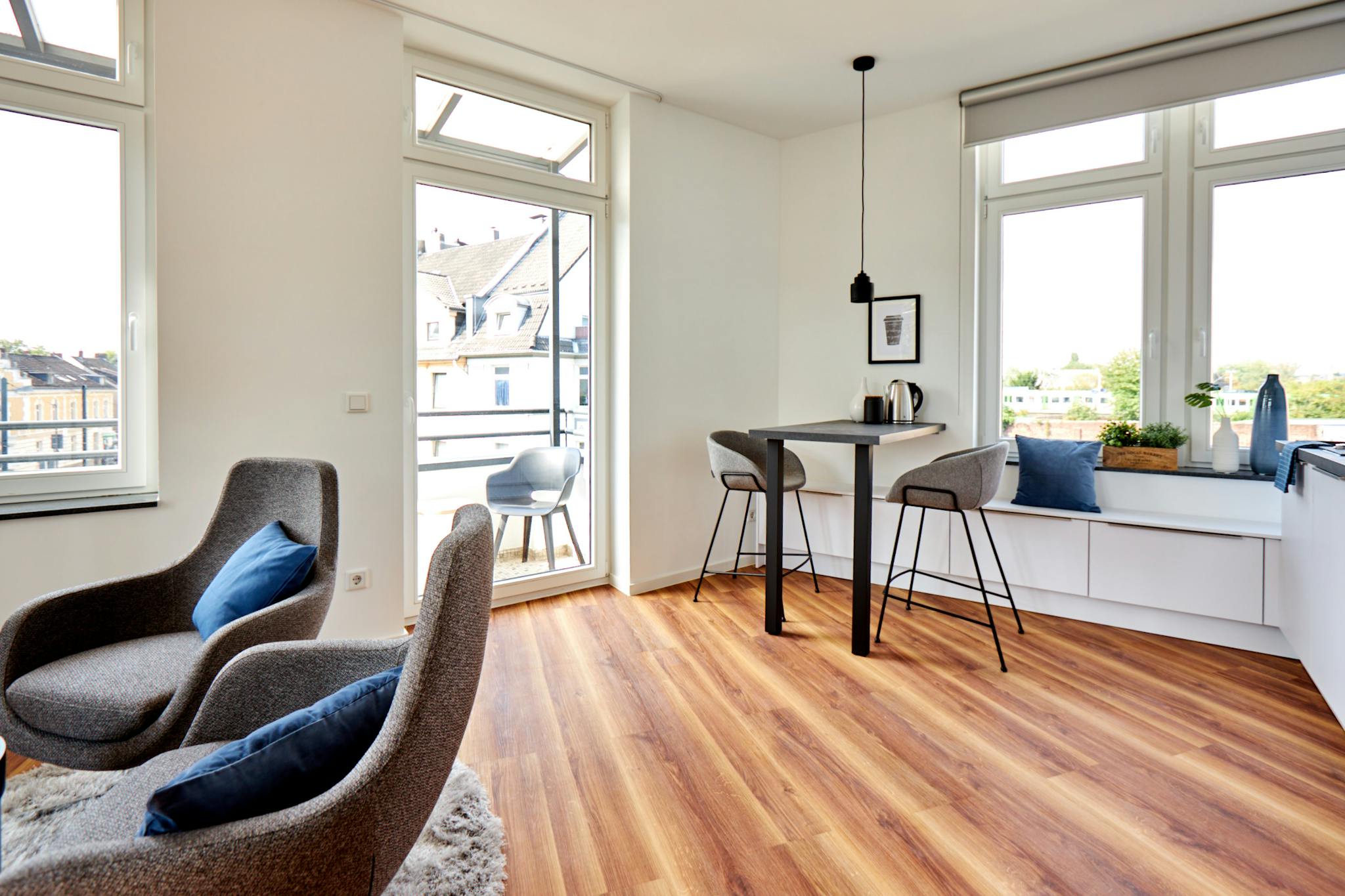 The apartment house is located on Gertrudisplatz, one of Düsseldorf's most attractive marketplaces dating back to the late 19th century. There are shopping outlets, cafés and bars close by.