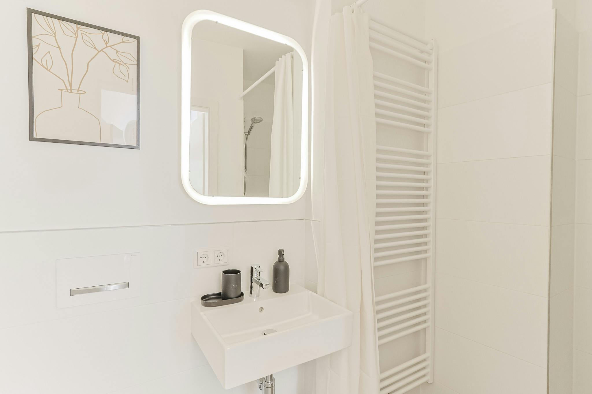 Das moderne Bad verfügt über eine begehbare Dusche.
