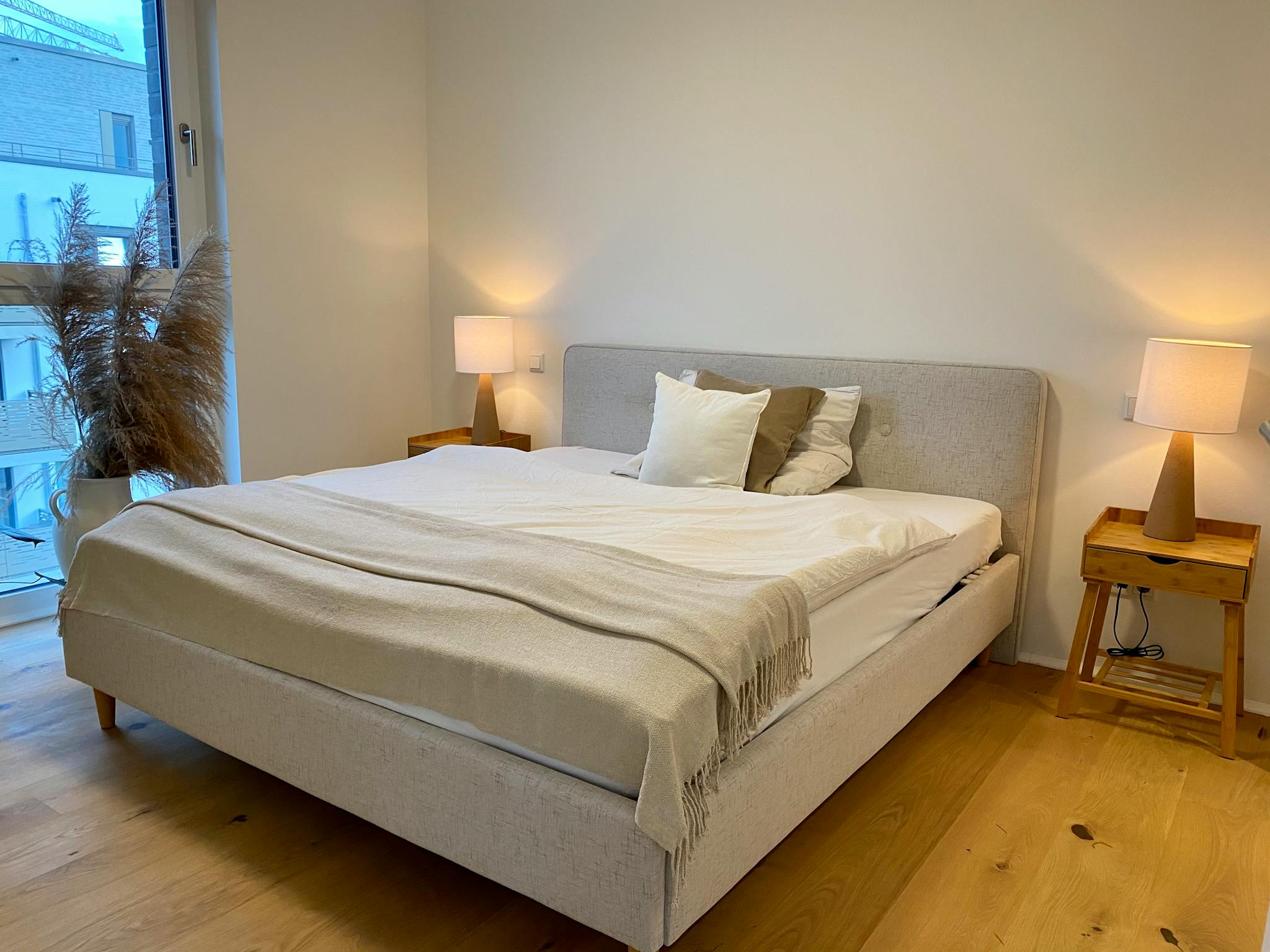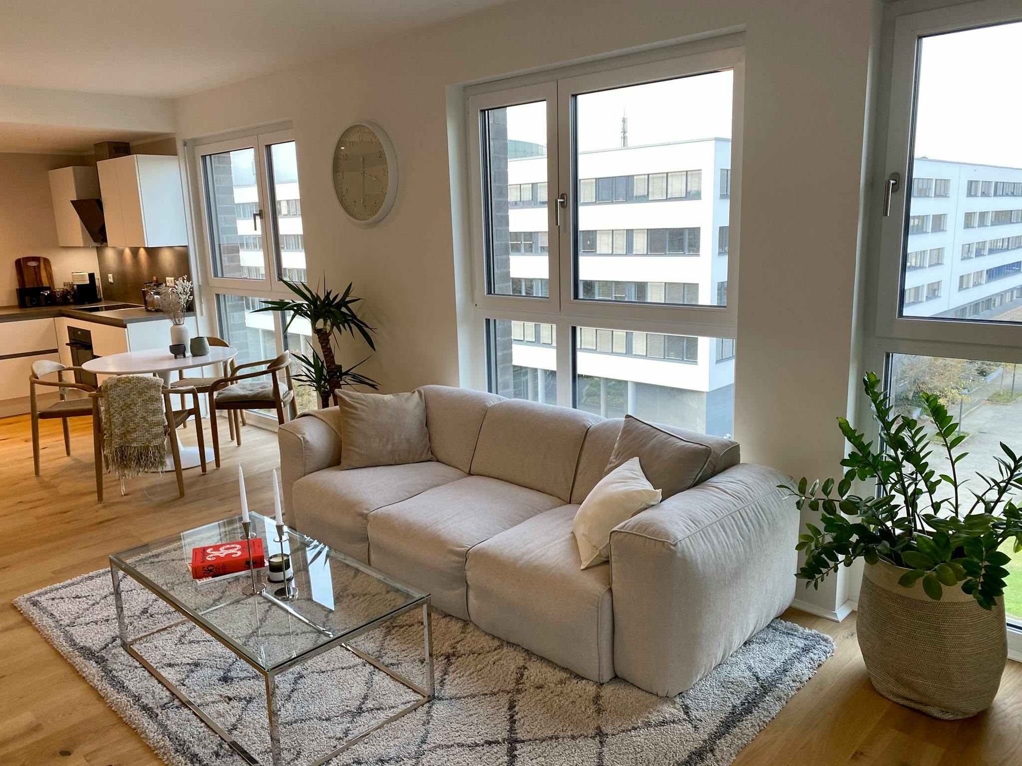 Non-SmokingNot allowedMove in and feel good. Everything you need for a short or long stay is available. The beautiful and modern apartment is equipped to a very high standard. The focus is on the 45m2 living room with an attached kitchen-cum-living room. The underfloor heating in the entire apartment ensures a pleasant room temperature. The high-quality, walk-in closet creates perfect order for your clothes. This apartment turns a nice work corner into a home office. Located on the 5th floor and thanks to the floor-to-ceiling windows, the apartment always appears bright and inviting without being disturbed by neighbours. The blinds can also create complete darkness. Carefully selected decoration provides that extra kick of cosiness.