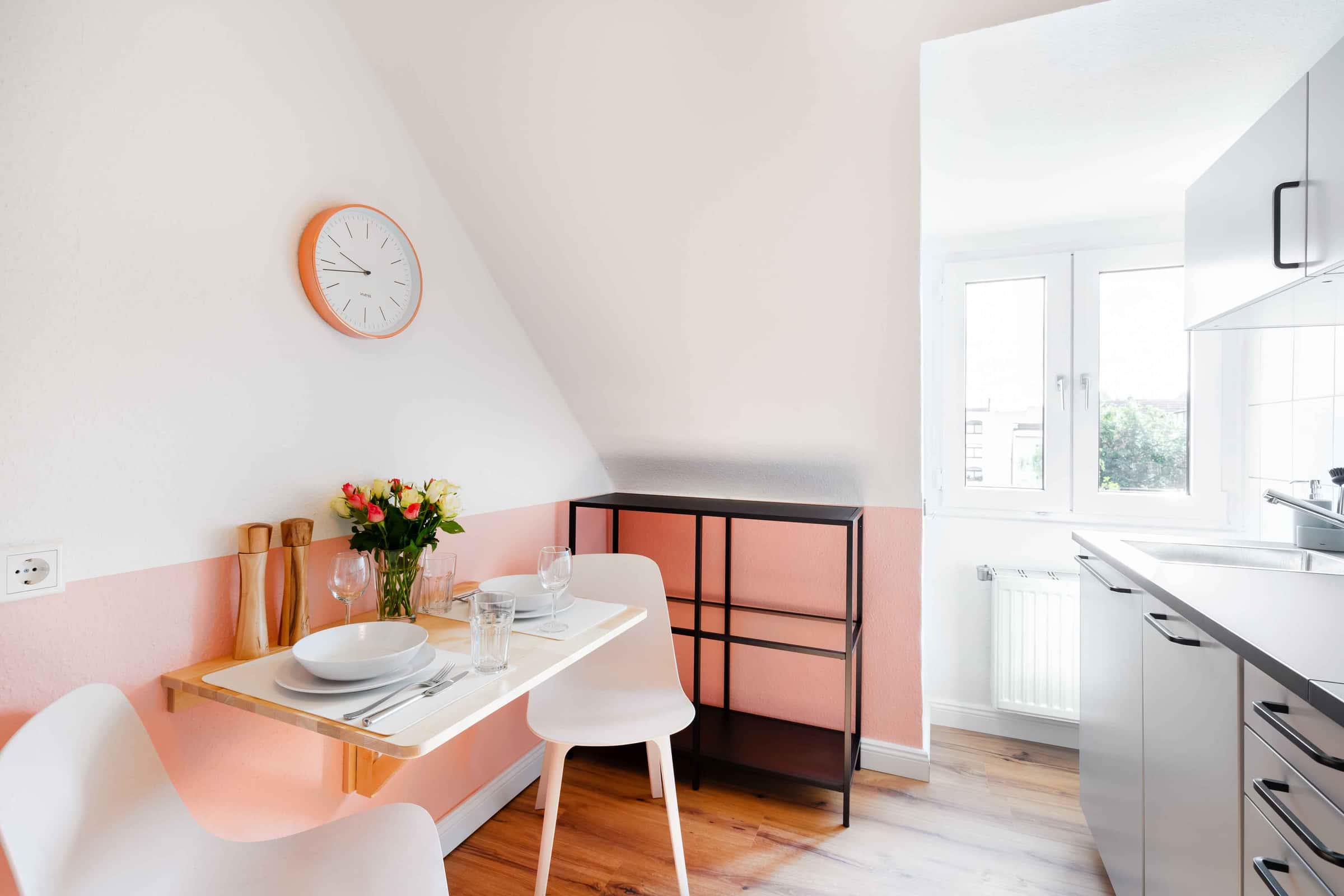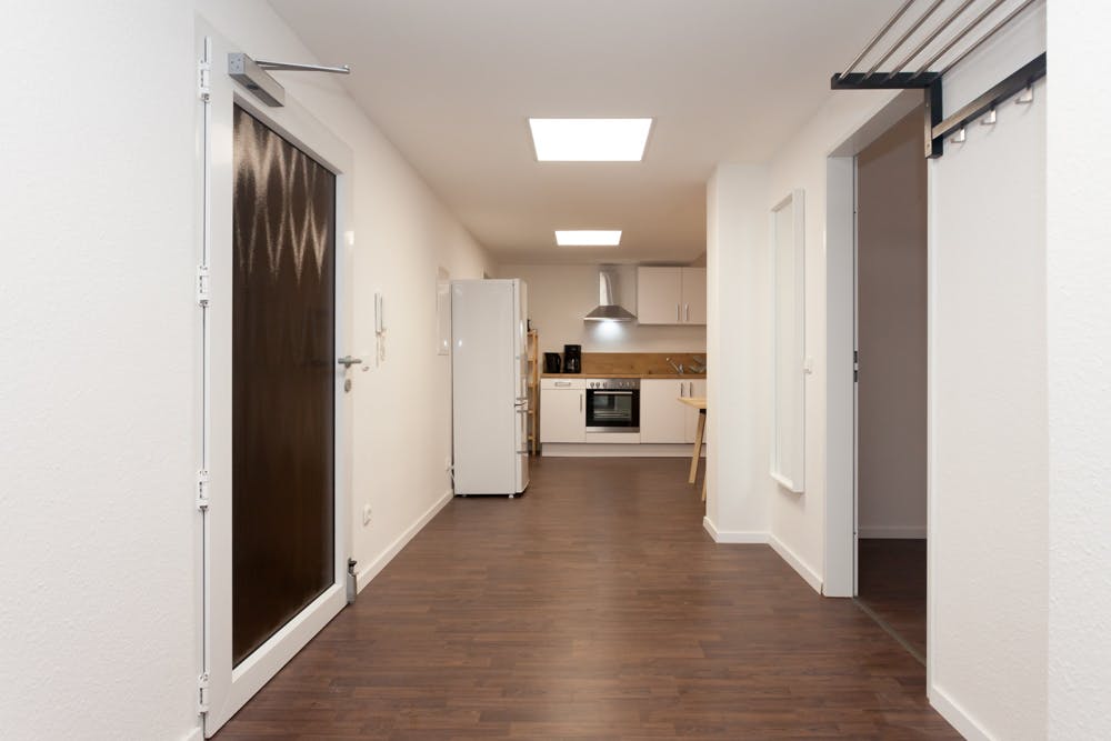 Our flats fulfil all your daily living requirements. Every flat comes readily equipped with a kitchen, including refrigerator, cooking equipment and dishes. Flats also include a washing machine and Wi-Fi Internet. Each room is fully furnished and offers a comfortable bed with fresh linen and a workspace. The area provides you with several shopping opportunities and excellent connections to public transport.
