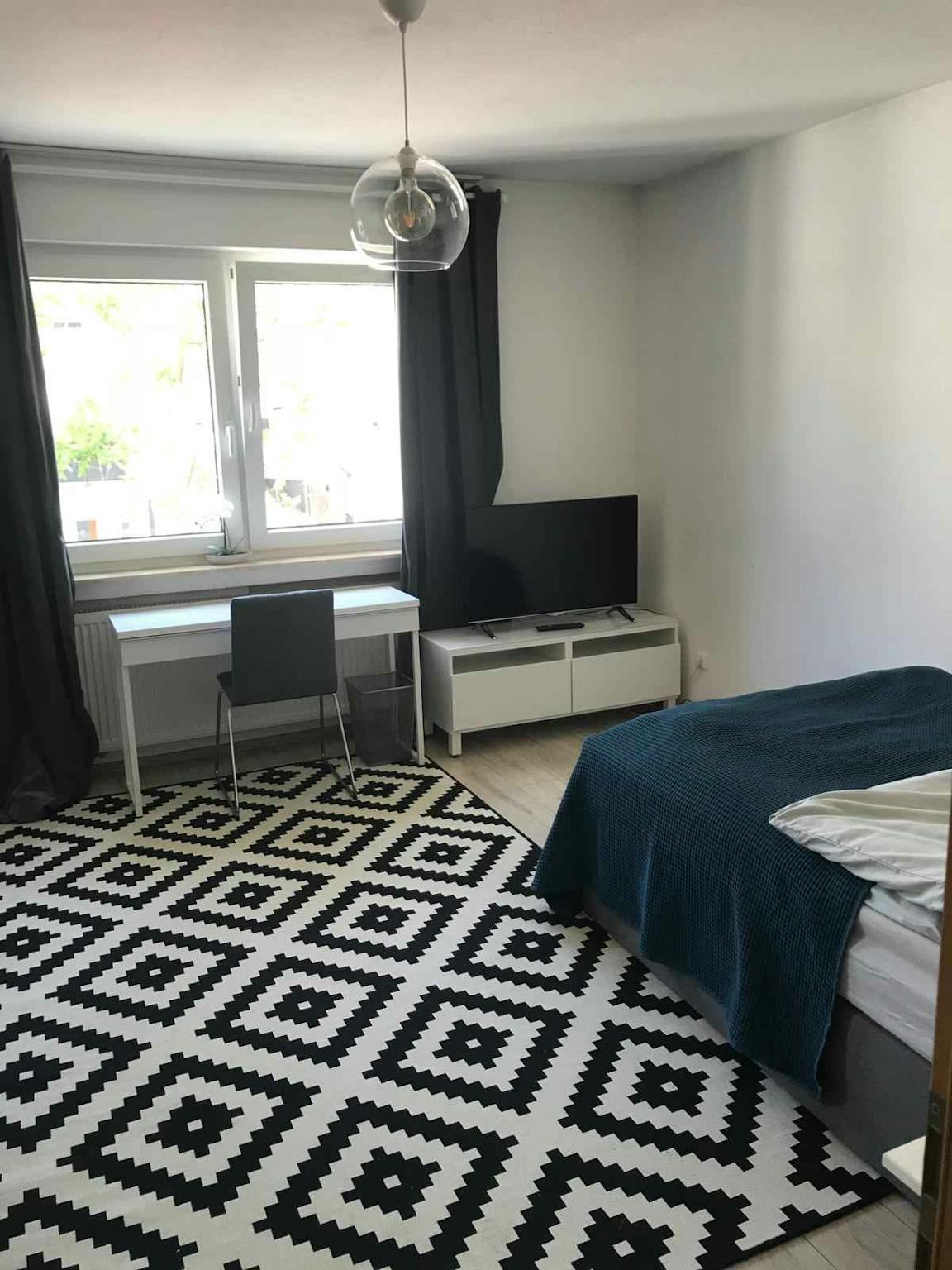 Live just a few steps from river Main right in the heart of Frankfurt. The lively quarter is lined with many shops, bars and restaurants. The new building apartment convinces with a bright entrance area and a spacious kitchen with a small dining zone, where you can enjoy common dinners with your roommates.