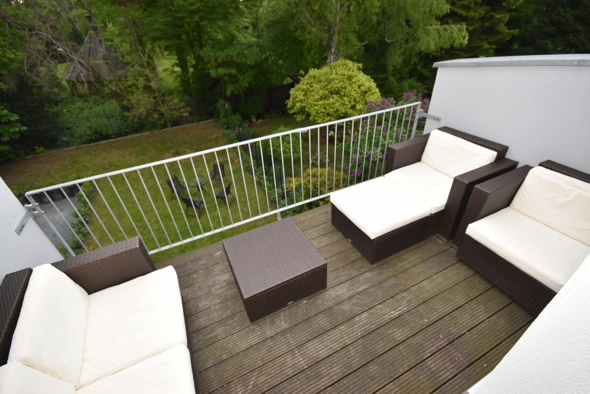 Das Haus steht auf einem hübschen, eingewachsenen Grundstück, hinter dem Haus steht den Mietern ein großer Garten zur Verfügung.