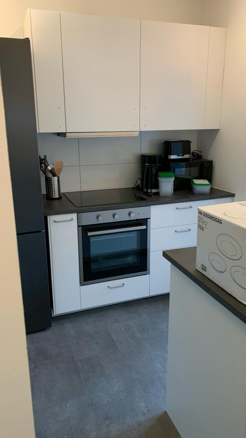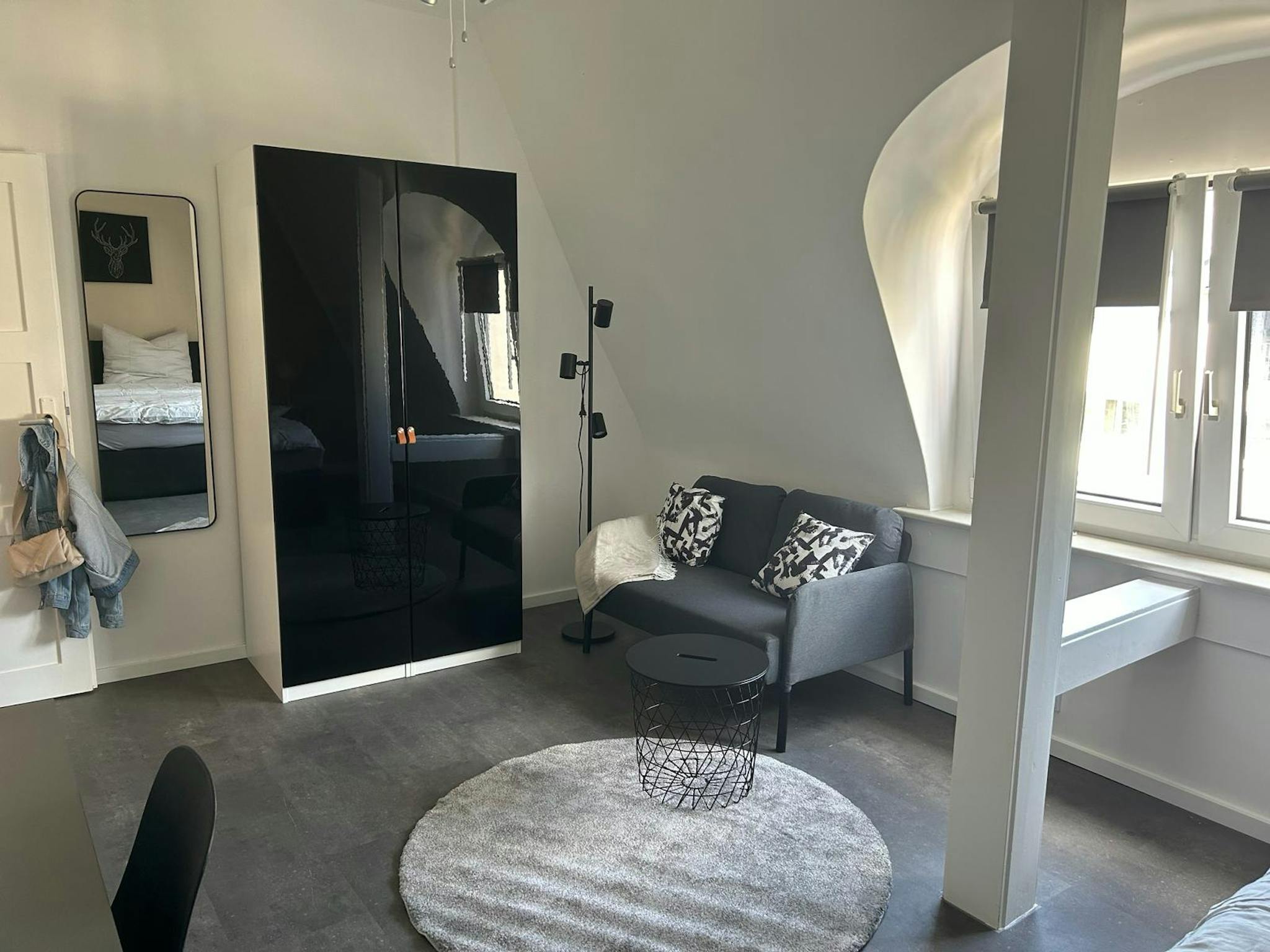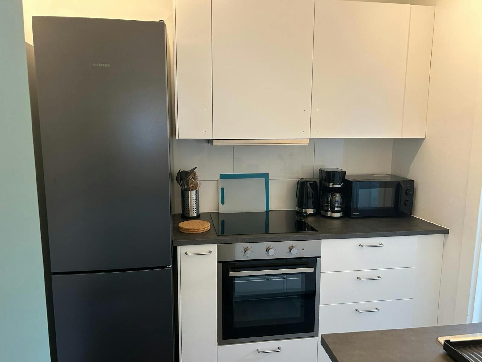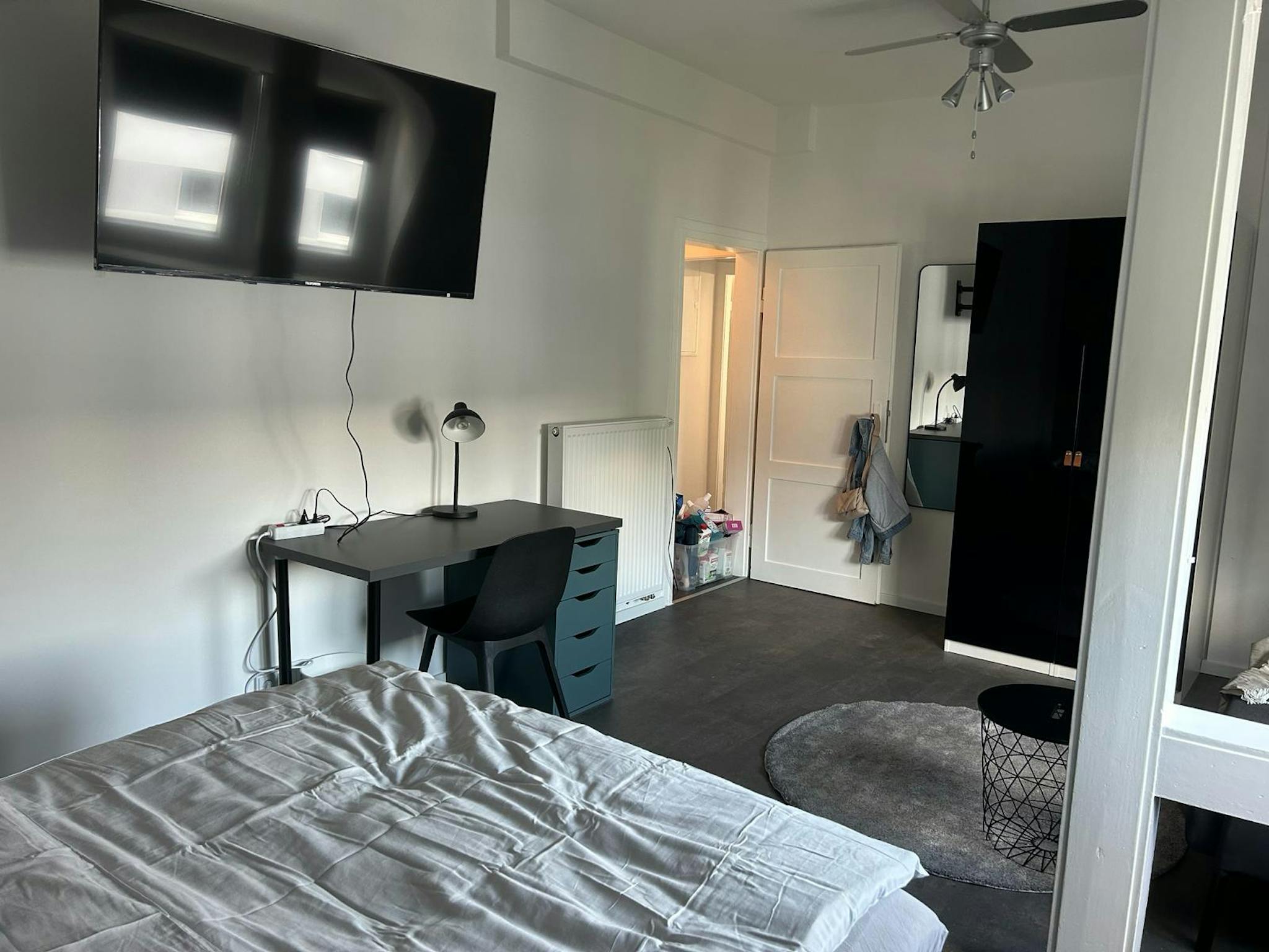 Außerdem findest Du einen Kleiderschrank für Deine Garderobe, einen Tisch und Stuhl für Arbeit oder Studium, ein Sofa ebenso wie einen SMART TV (55 Zoll) für Deine Unterhaltung. Die Küche ist perfekt, um hausgemachte Mahlzeiten zuzubereiten. Teil der Ausstattung sind Waschmaschine mit Trockner-Funktion und Spülmaschine.
