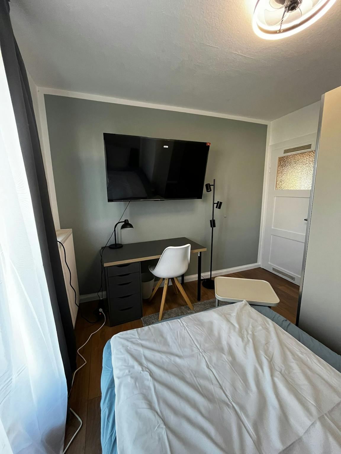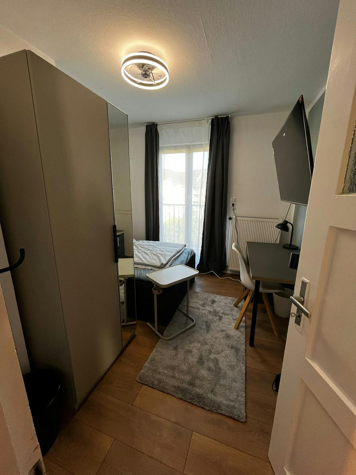 Ein großzügiges und praktisch eingerichtetes WG-Zimmer schafft eine „Wohlfühl“-Atmosphäre, sobald Du das Zimmer betrittst. Für einen erholsamen Schlaf steht Dir ein Boxspringbett mit den Maßen ca. 1,20m x 2,00m zur Verfügung.