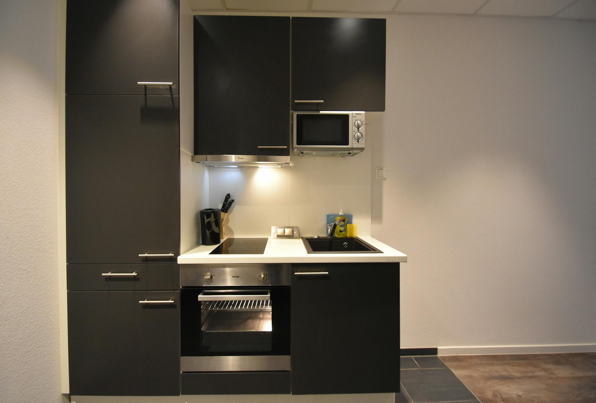 You will stay in a cozy, modern apartment designed with comfort and quality in mind. The 2-room layout features a double bed perfect for a single occupant or couple, plus a private bathroom with shower and a fully equipped kitchenette. Just bring your clothes and personal belongings—everything else is ready for you to feel at home.