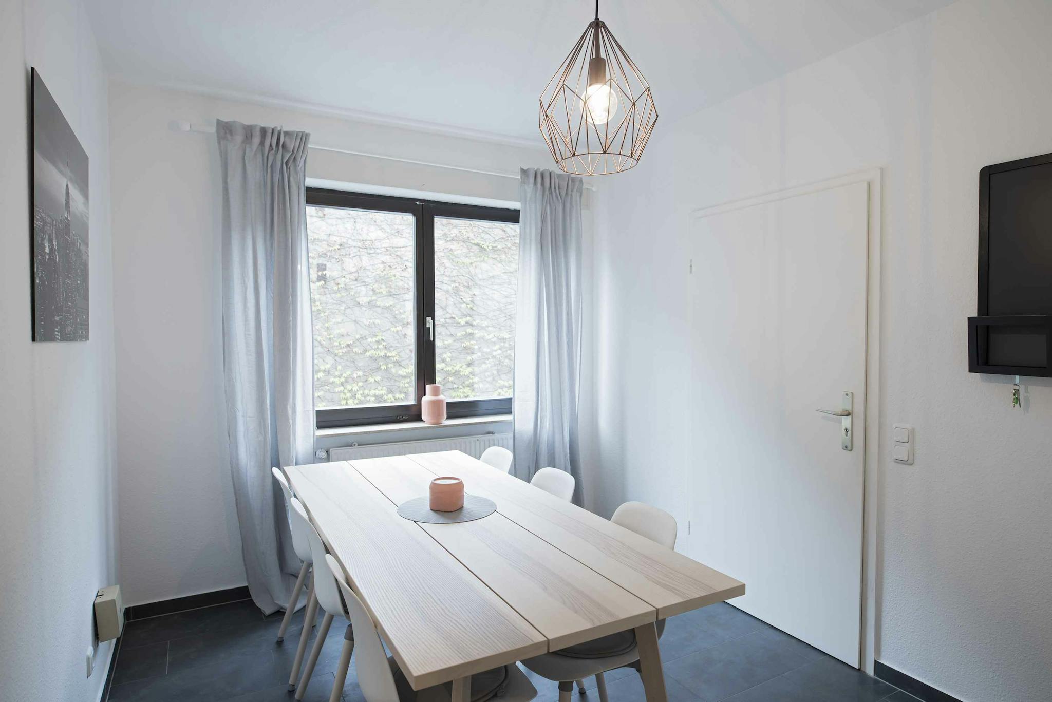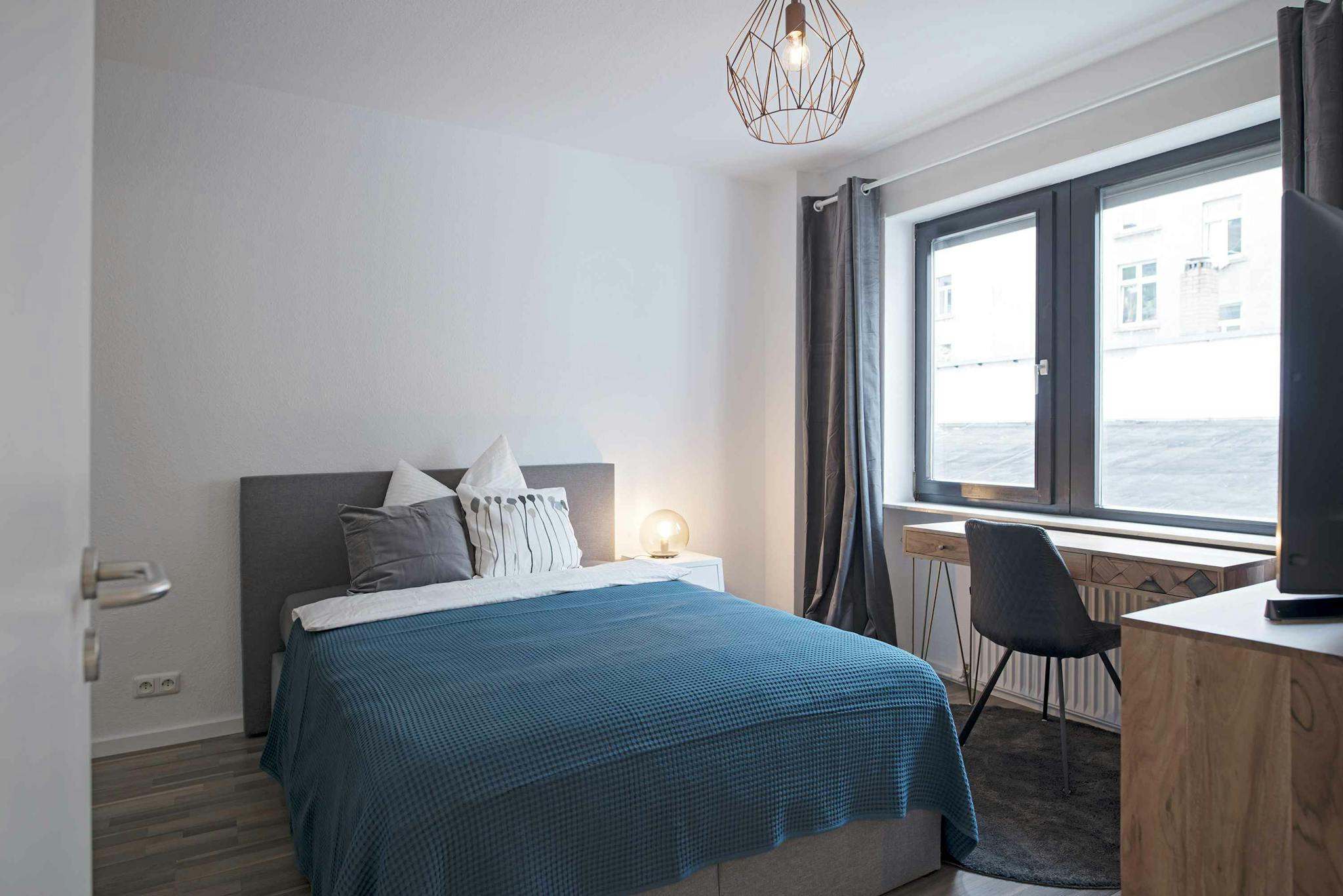 Live in a very popular quarter of Frankfurt, with a mix of students and old-established. Next to the apartment, there is a big park that invites to beautiful walks. The renovated old-building convinces with a spacious hallway and a bathroom with shower and corner tub. There is an eat-in kitchen and a common area to chill, eat and get together.