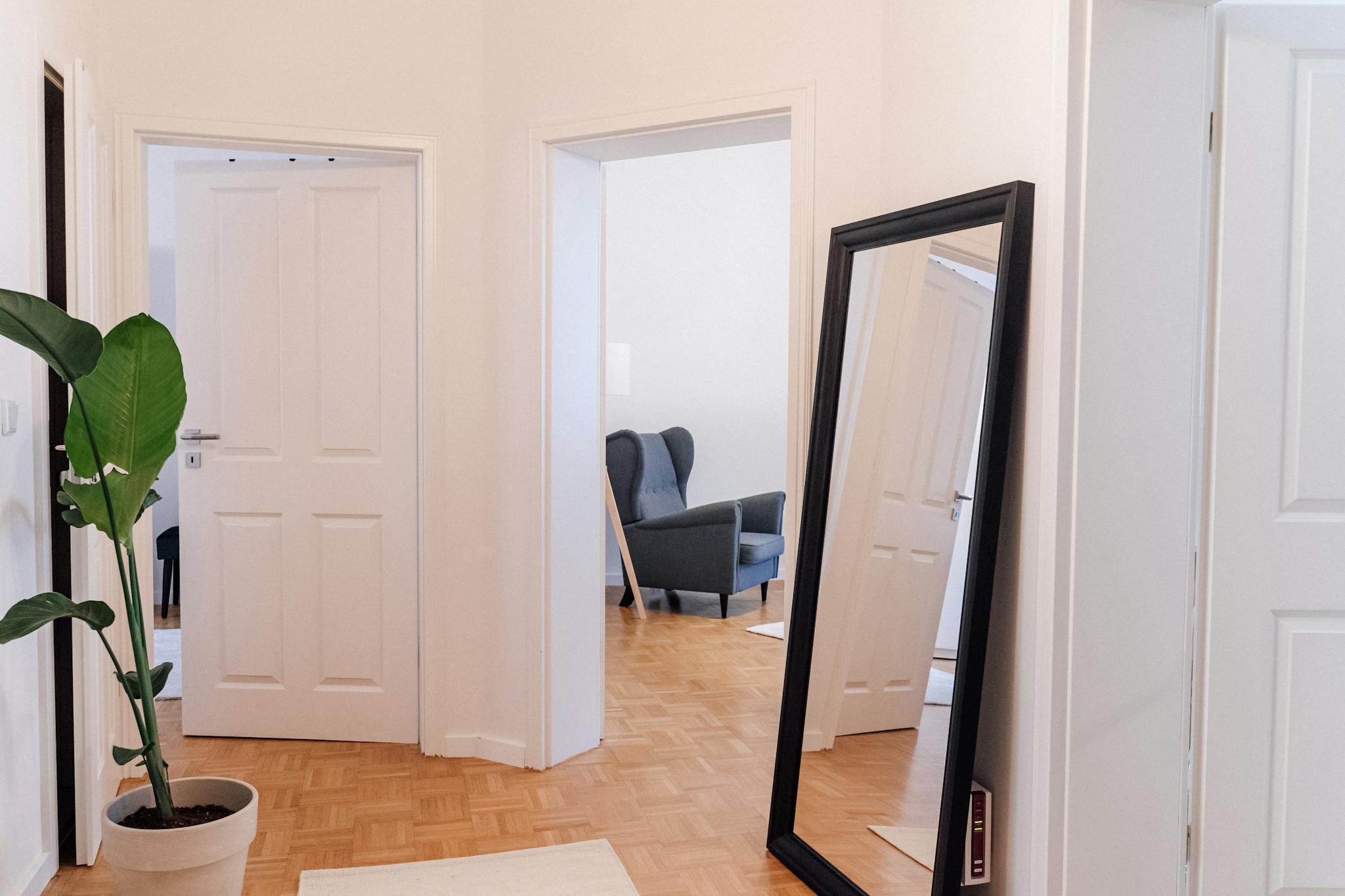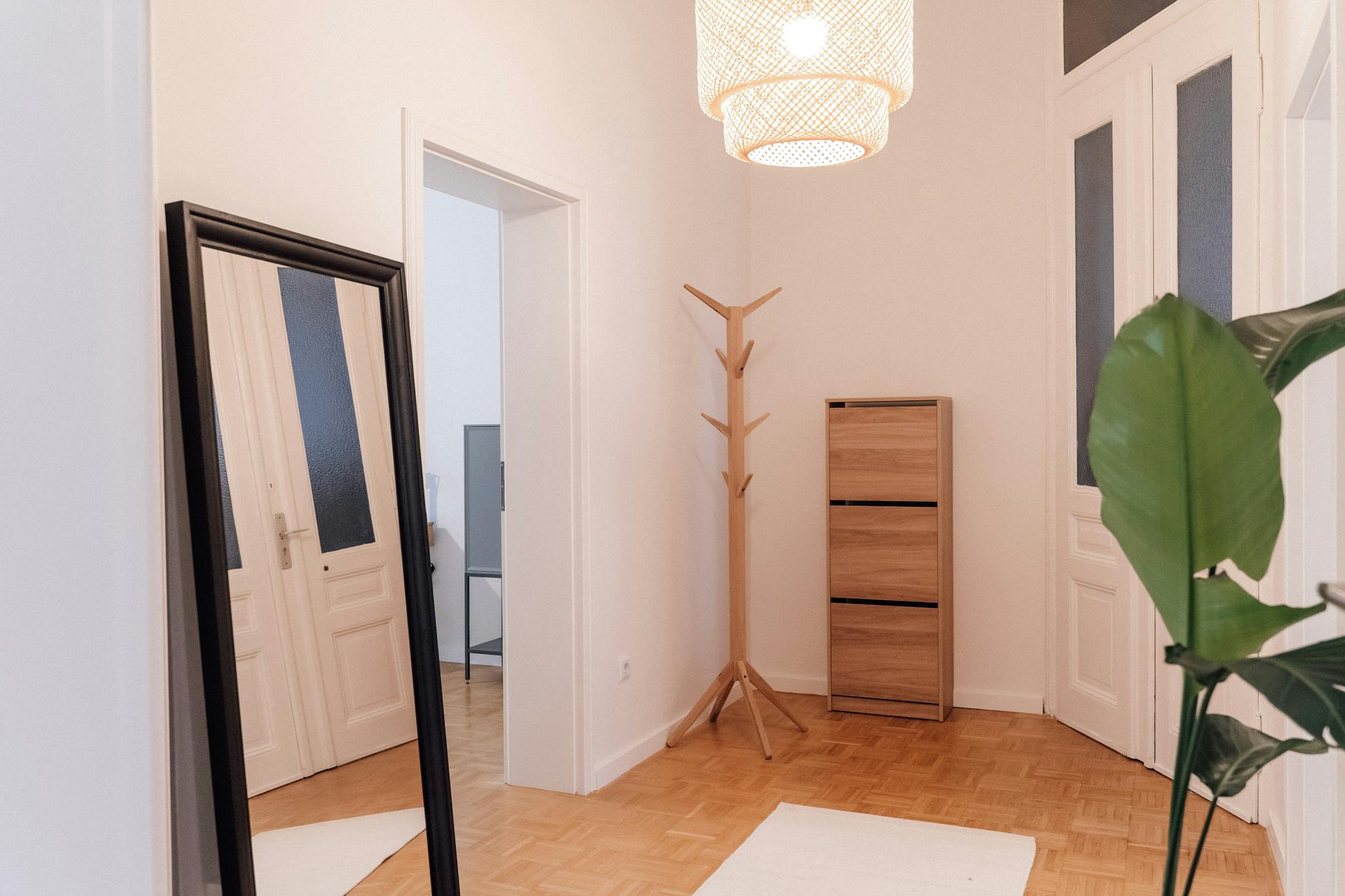 Located on a quiet street in central Frankfurt, this classic 1910 building blends historic character with modern amenities. The recently renovated apartment features high ceilings, wooden floors, and contemporary furnishings.