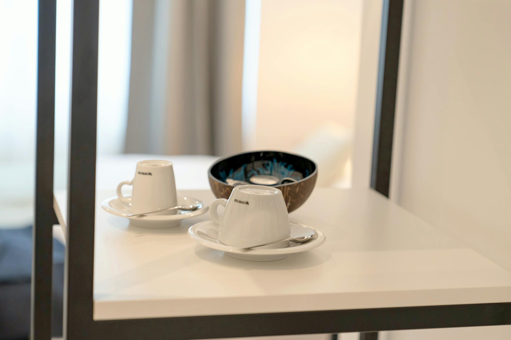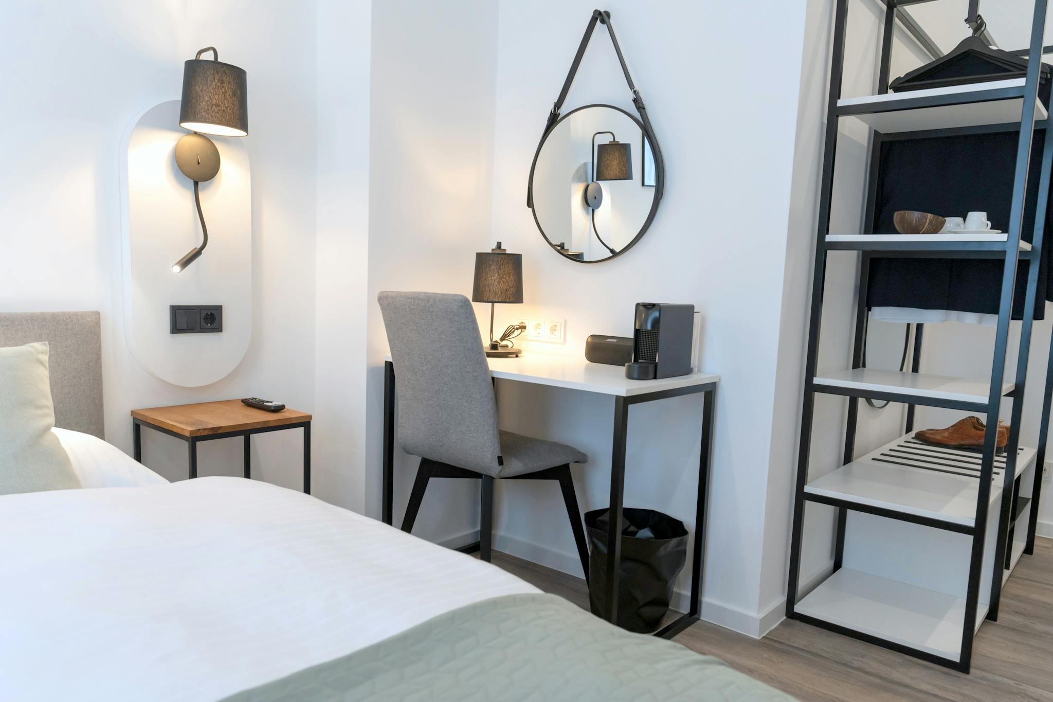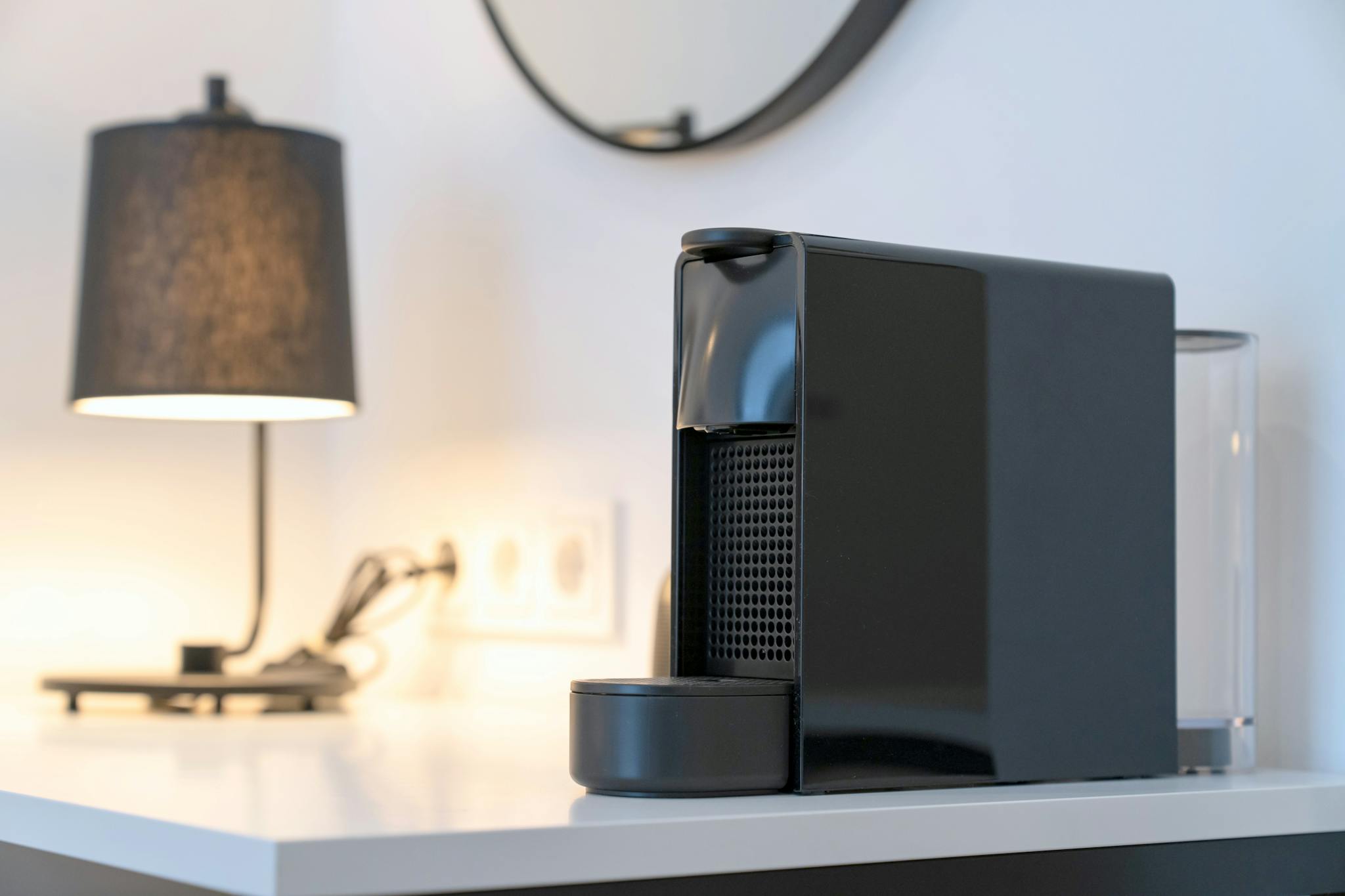 Genießen Sie eine Tasse frischen Kaffee aus der Nespresso-Kaffeemaschine, die für Ihren persönlichen Genuss bereitsteht. Auch der Schreibtisch mit passendem Stuhl und Schreibtischlampe ermöglicht es Ihnen, in Ruhe zu arbeiten oder Ihre Tagesplanung zu organisieren.