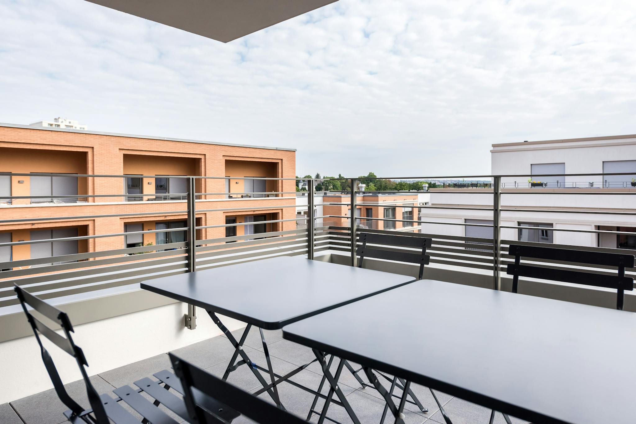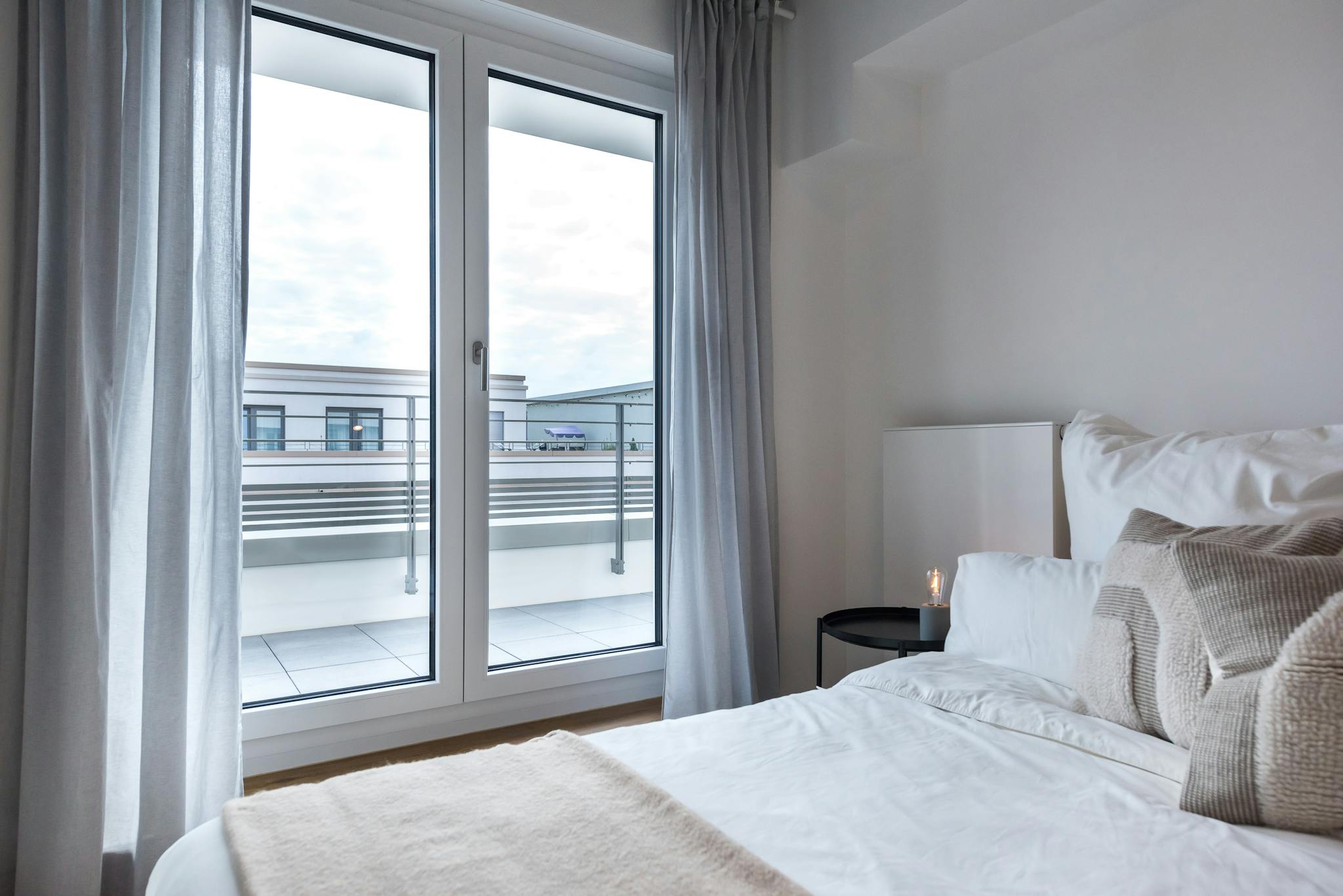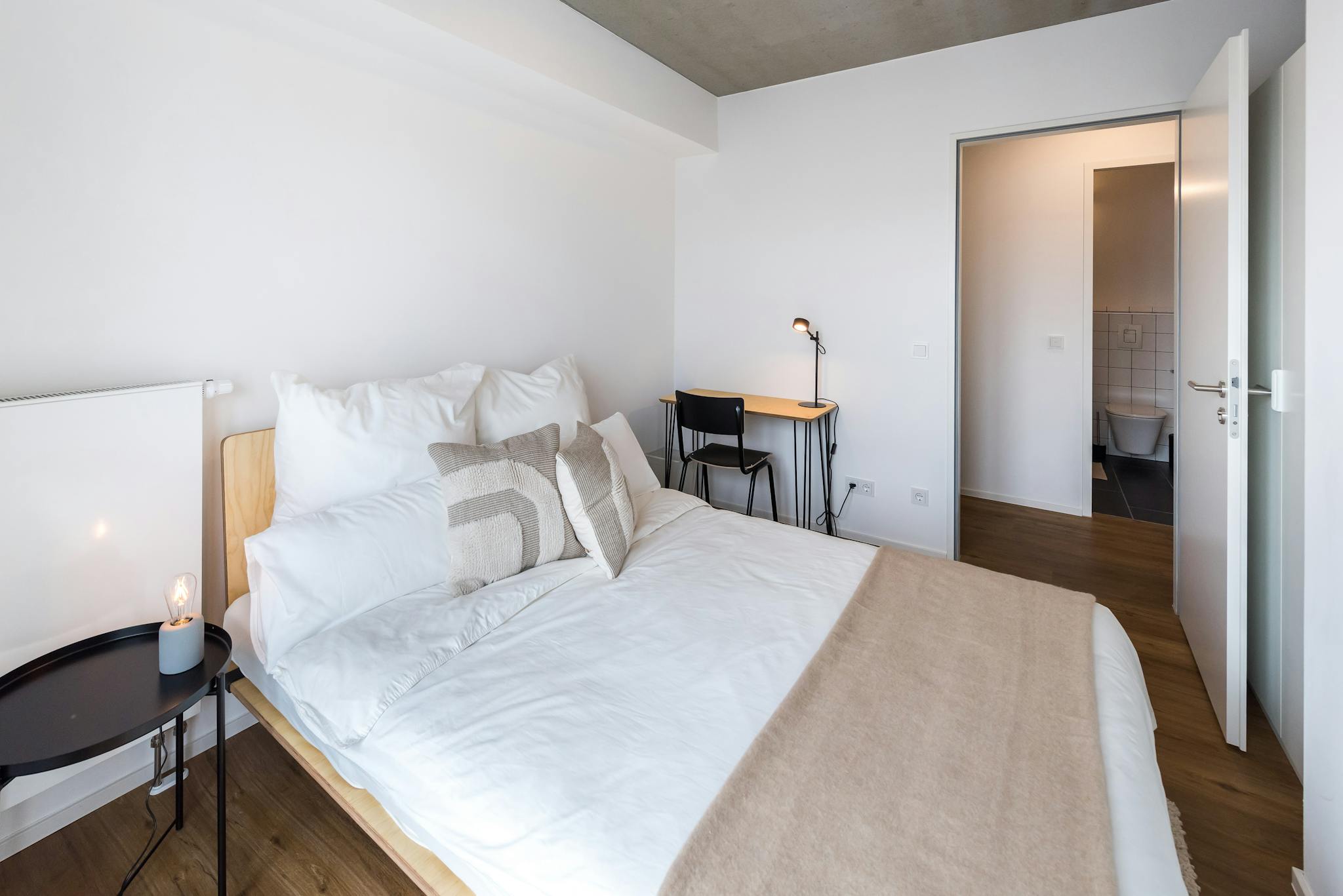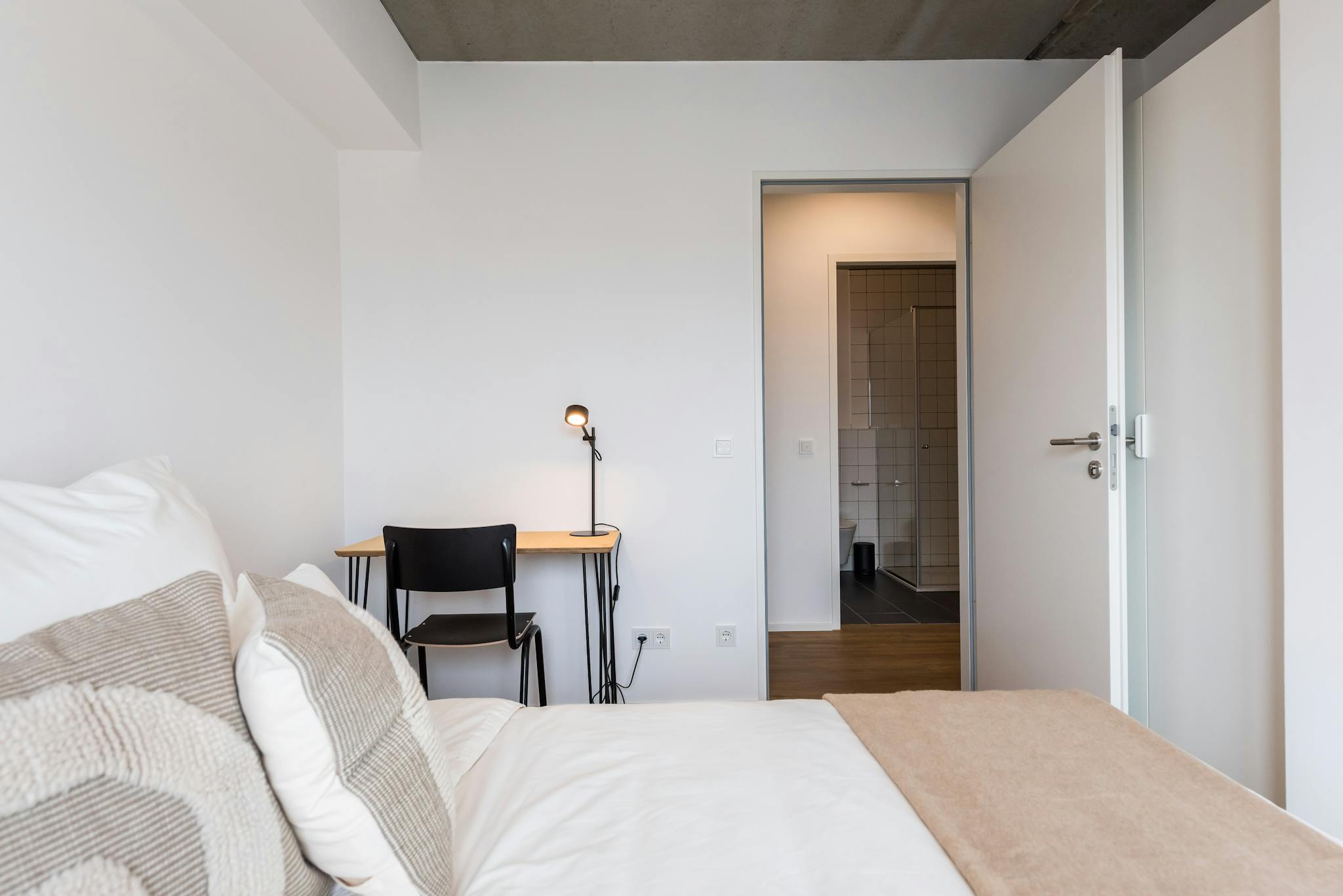 Our rooms come fully furnished with everything you need for a comfortable daily life, such as a bed with a premium mattress with bedsheets, pillows, and duvets, a large wardrobe, table, and chair for work with a lamp. Some rooms also have a private or shared balcony or terrace for you to enjoy the sunshine.