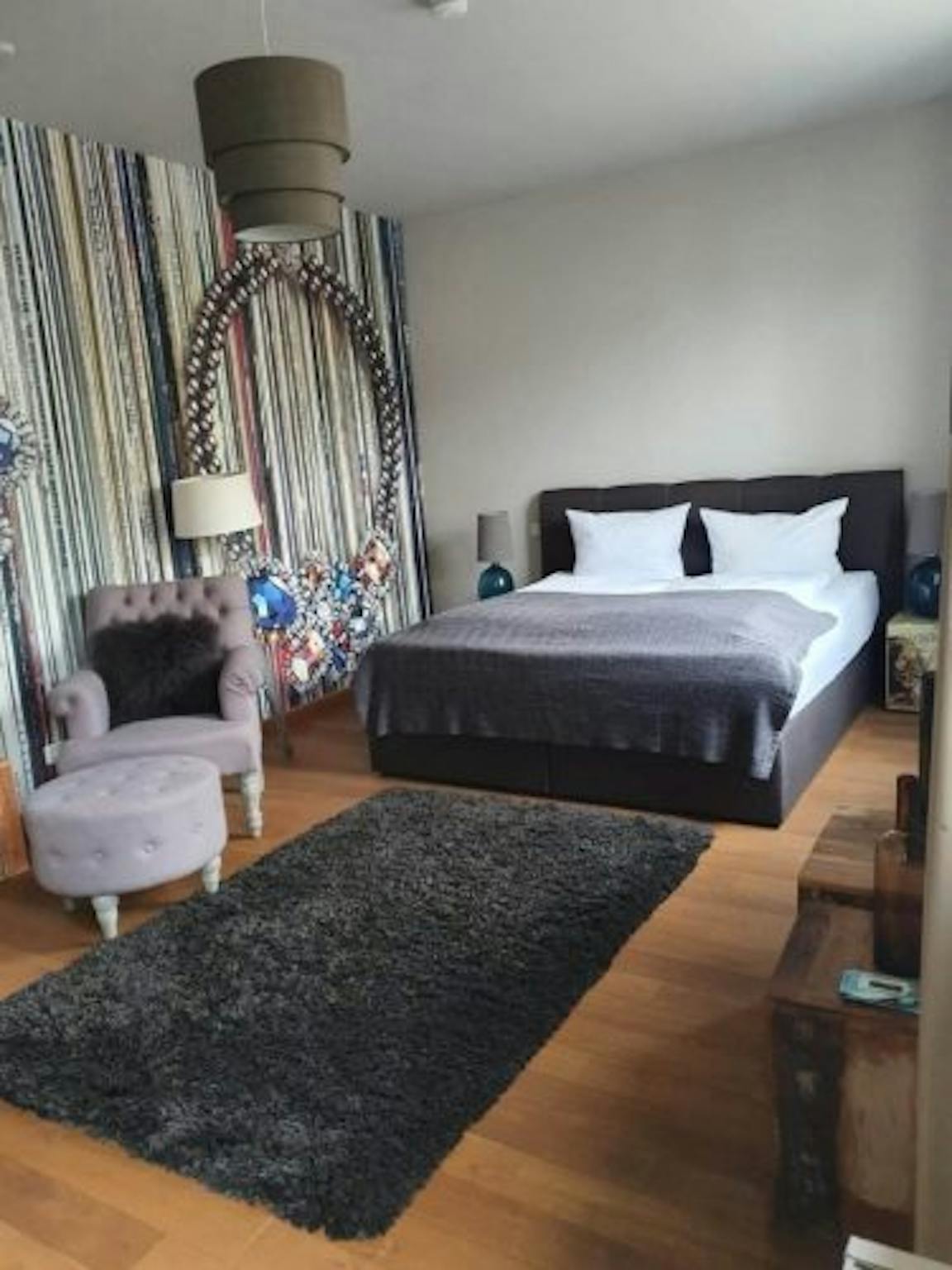 Wohnen und Design. Das gehört für uns zusammen. Komfort, Inspiration und Atmosphäre – darauf legen wir großen Wert! Bei uns verirrt sich niemand. Denn jede Etage und jedes Appartement ist eine Welt für sich: So schmücken Seiten der großen Brockhaus-Enzyklopädie einen Flur. Während ein zweiter vollgekleckst ist mit weißer Farbe, beherbergt ein dritter eine originelle Sammlung von Kuckucksuhren. Ebenso wie die Stockwerke sind unsere Appartements mit viel Liebe zum Detail inszeniert. In zwei Stilrichtungen - Bohemian und Scandinavian. Das Apartment befindet sich auf Stockwerk 1 - 5. Die Größe des Apartments sowie die Bettgröße und die Stilrichtung variiert je nach Apartment und wird nach Verfügbarkeit zugeteilt.
