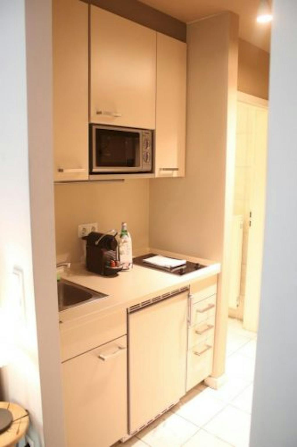 Non-SmokingNot allowedEin-Zimmer Apartment ab 35 m2 mit Doppelbett (1,40/1,60 x 2,00 Meter), voll ausgestatteter Kitchenette (Mikrowelle, Ceranfeld, Kühlschrank, Nespresso-Kaffeemaschine, Töpfe, Pfanne, Gläser, Teller, etc.), exklusives Badezimmer mit Badewanne, Handtücher und Bettwäsche, Essbereich und Fernseher. Nach Verfügbarkeit mit Balkon.