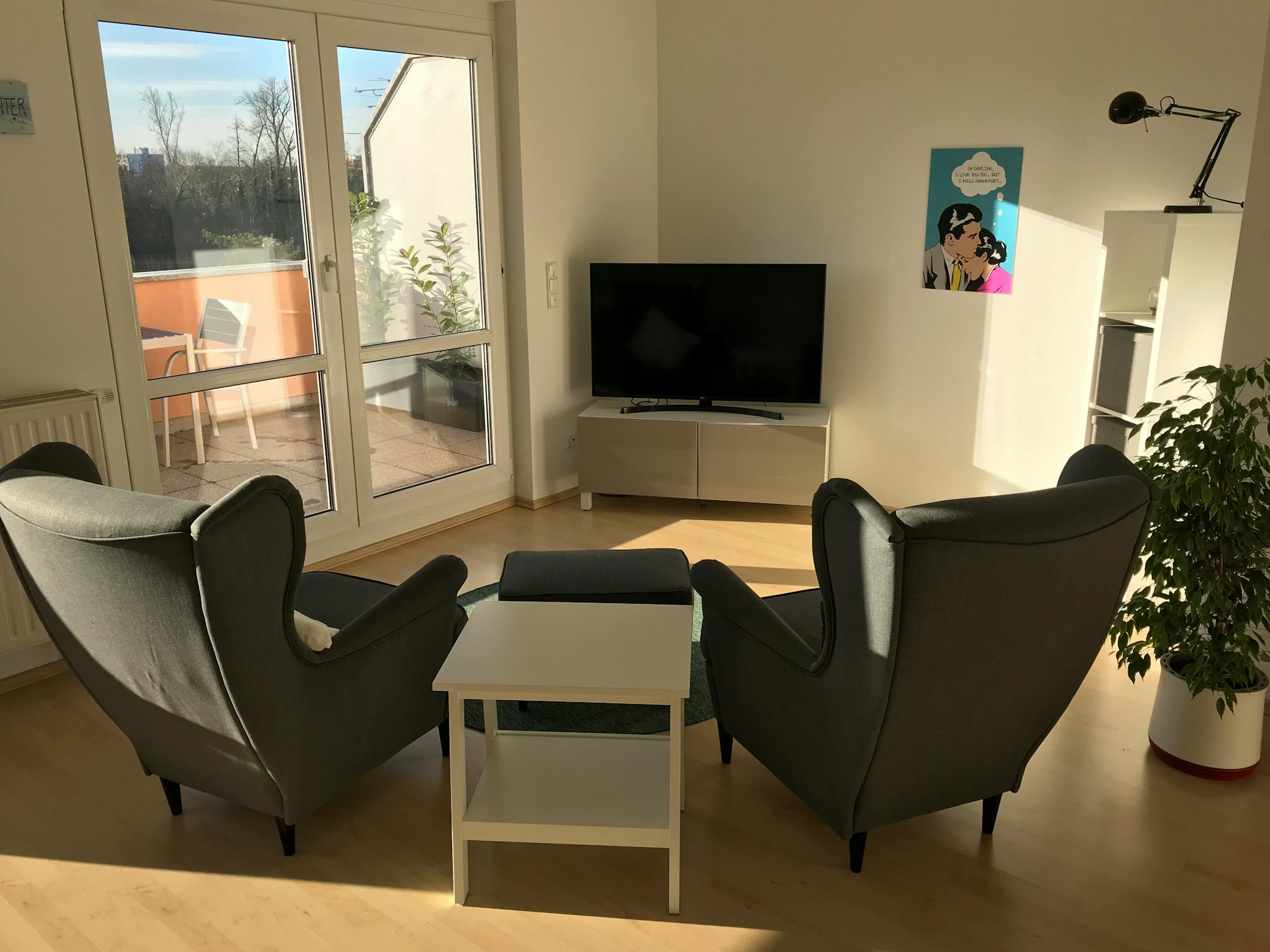 Your new, conviently located penthouse apartment with a view of the river Main from a spacious south-facing roof terrace has 70 m2 of living space. The modern and light-flooded apartment with open fitted kitchen, bedroom with bathroom en-suite and separate guest toilet is freshly renovated and completely equipped. Ideal for a short-term move in for carefree living and well-being. The well thought-out living concept allows you a carefree start in the Main metropolis Frankfurt.