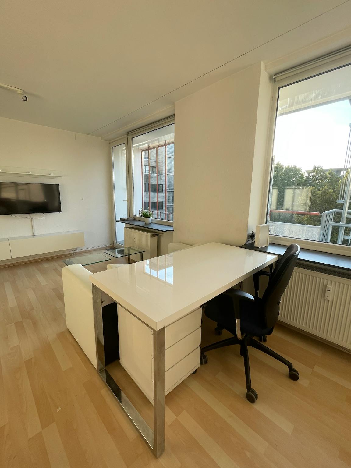 A well-equipped, furnished studio apartment is available for rent at a flat rate for a limited period with the option to extend it in Frankfurt's top location in the city center.