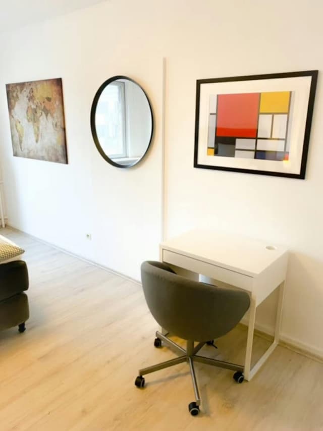 The apartment is located in a very beautiful and well-maintained old building in the middle of the exclusive Frankfurt district Frankfurt Westend North! Ideal for interns and young professionals, it takes 2 minutes by foot to the Opera Square or to Goethe University. More central is hardly possible! In addition, Westend in Frankfurt not only impresses with its central location but also with its exclusivity. Restaurants and bars are within walking distance.