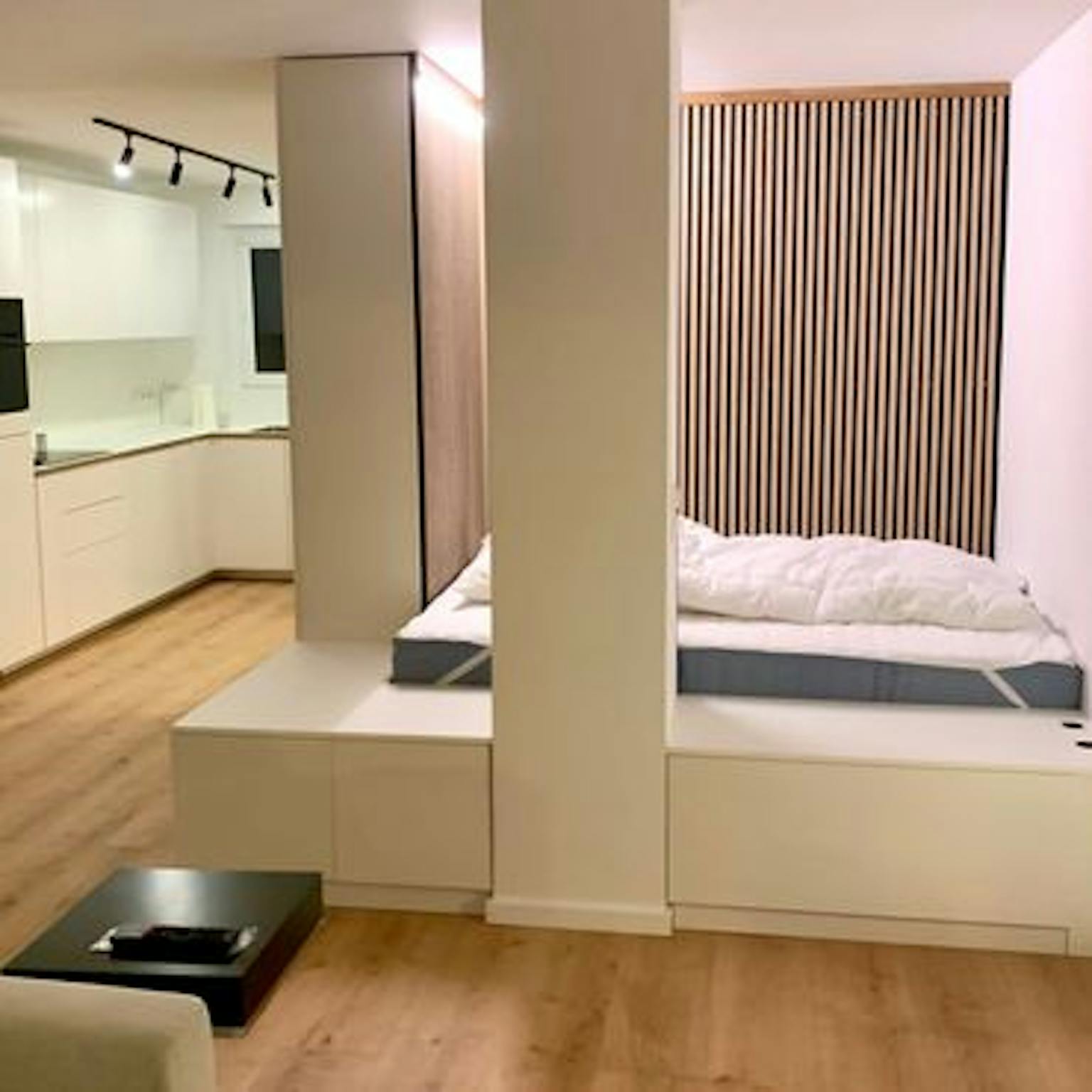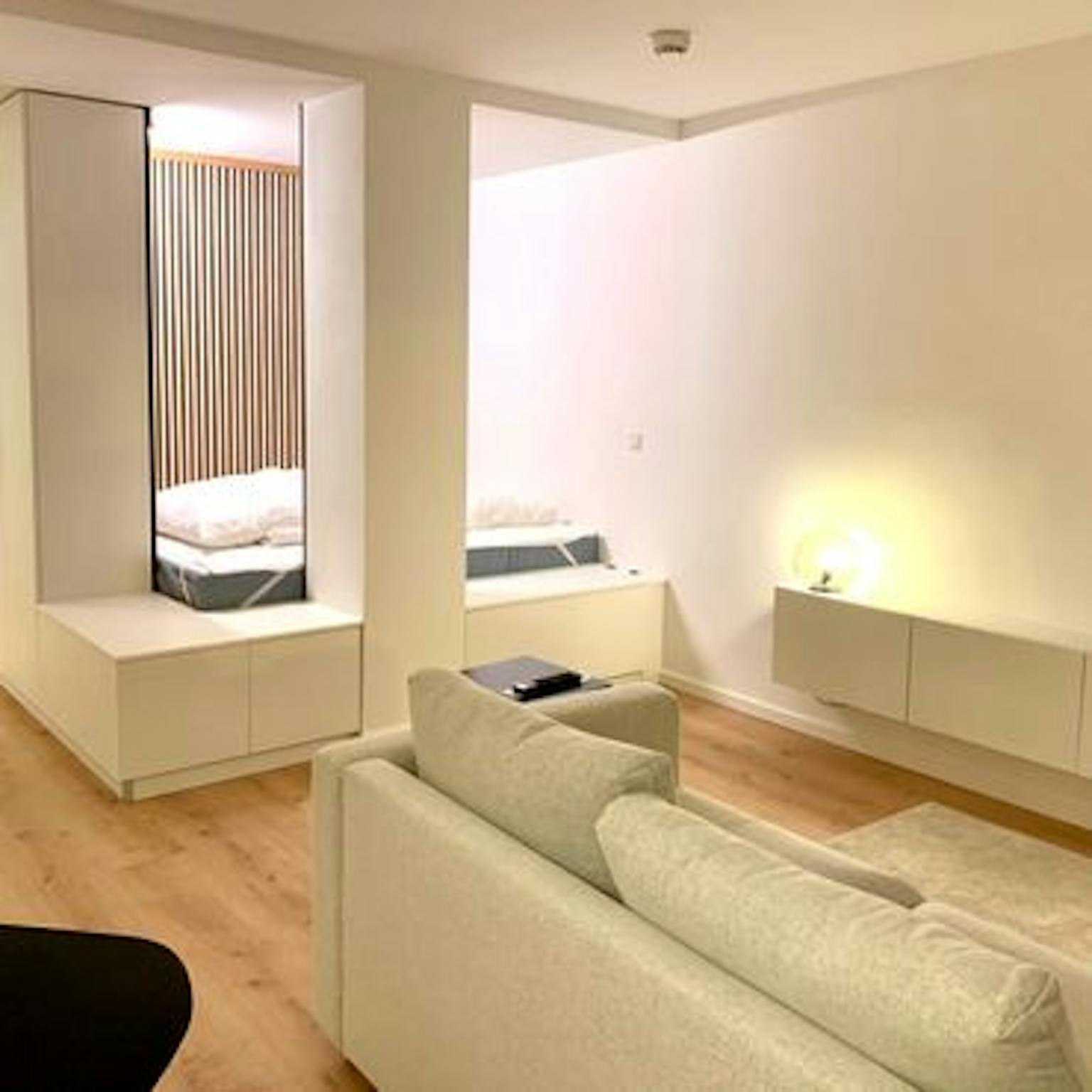 Ein durchdachtes Raumkonzept bietet auf 42qm viel Platz, Licht und Komfort und aufgrund einer maßgeschneiderten Möblierung gleichzeitig viel Stauraum.