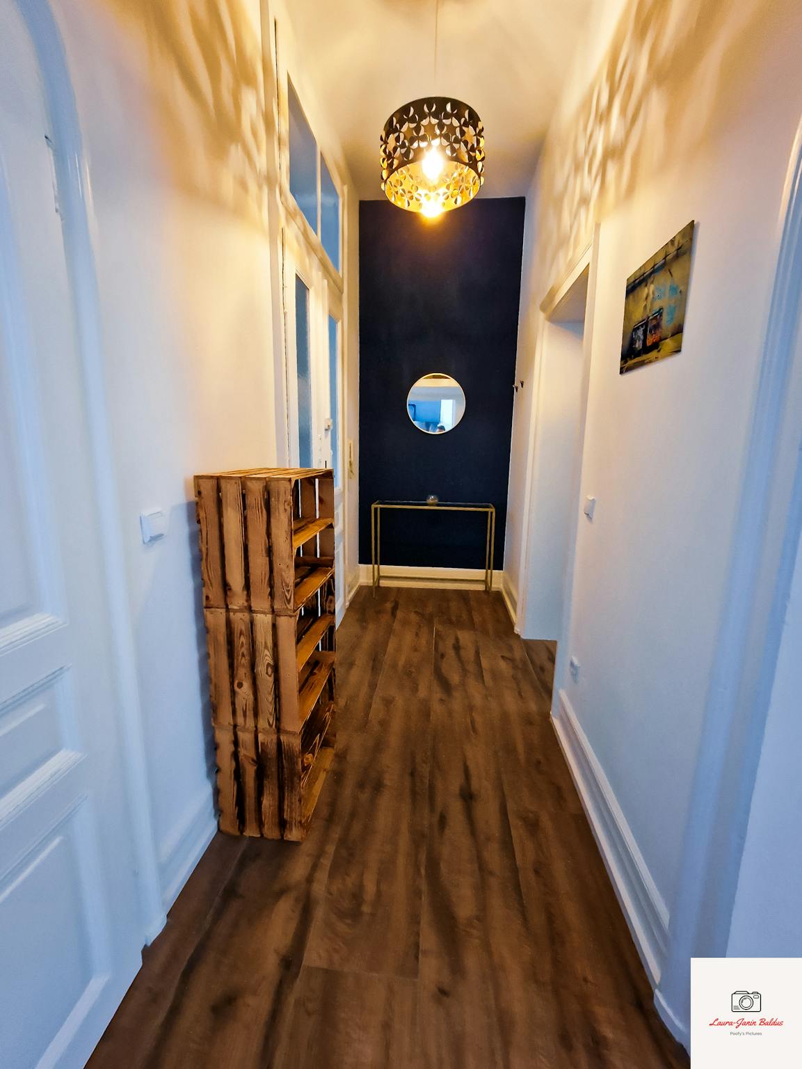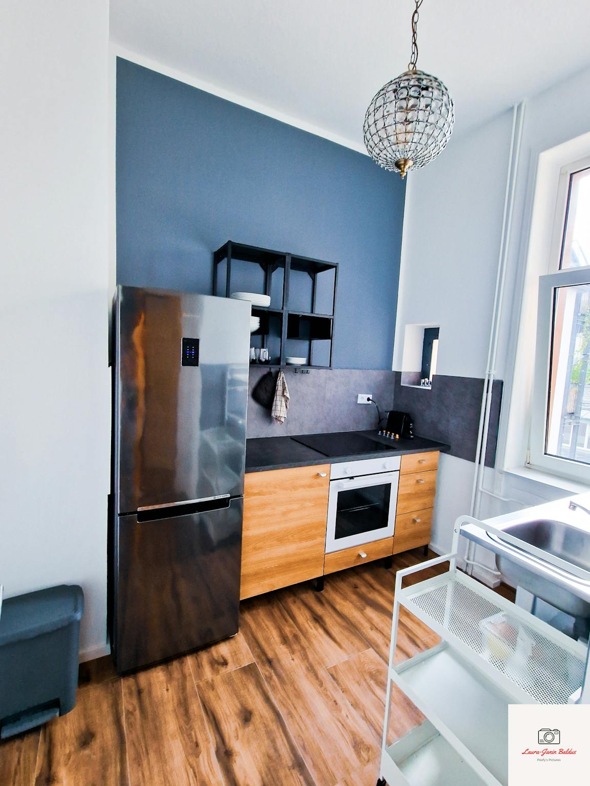 Die 50m2 teilen sich auf zwei große helle Räume auf, Schlafzimmer und Wohnzimmer, eine neu eingerichtete Küche, und ein stilvoll renoviertes Bad mit Dusche.