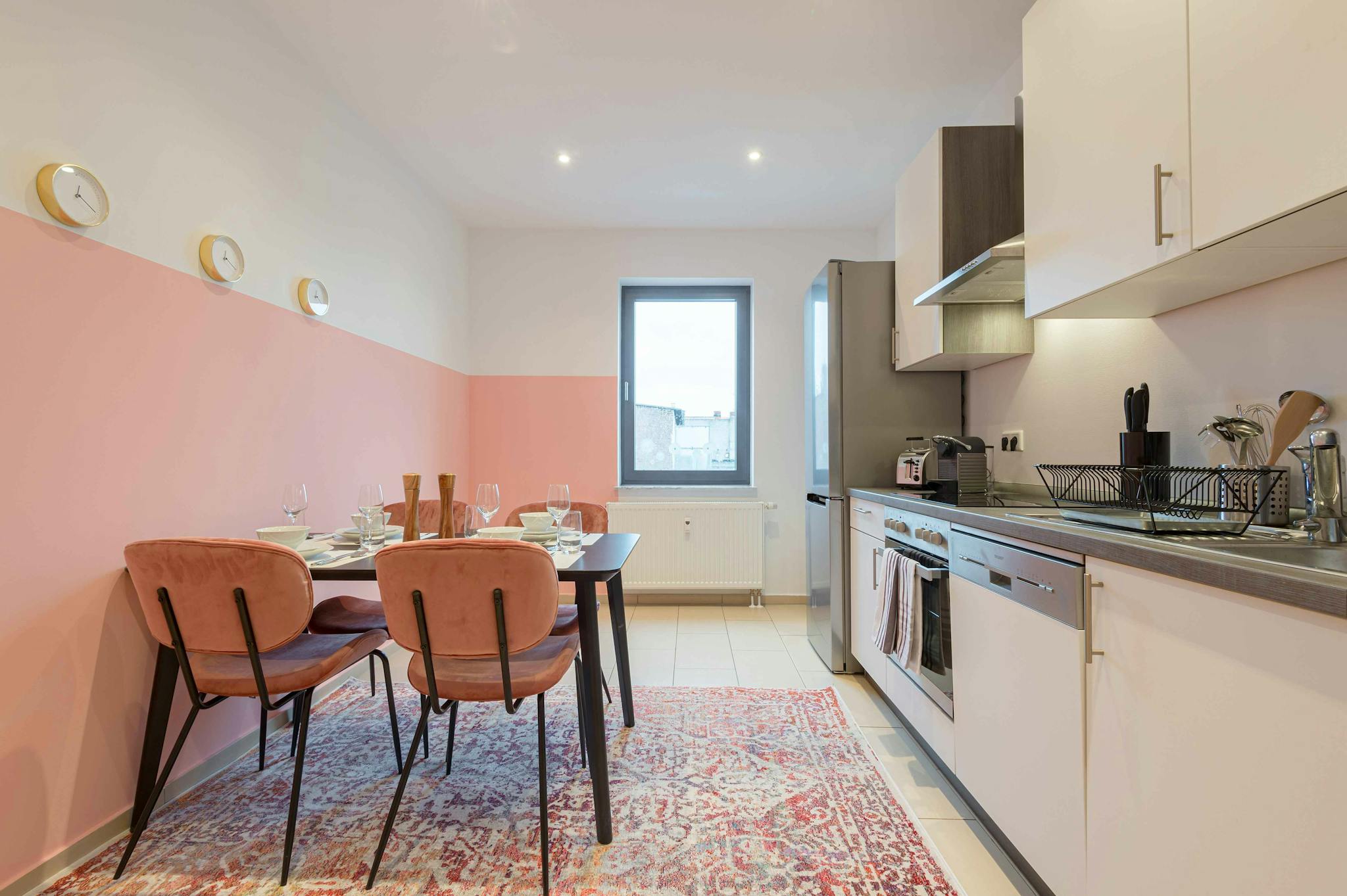 Live in one of the most popular districts of Frankfurt, Bockenheim. There are numerous shops, bars and restaurants and the easy access to public transportation shortens the way to the inner city enormously. Our modern apartment in a stylish old building awaits your move.