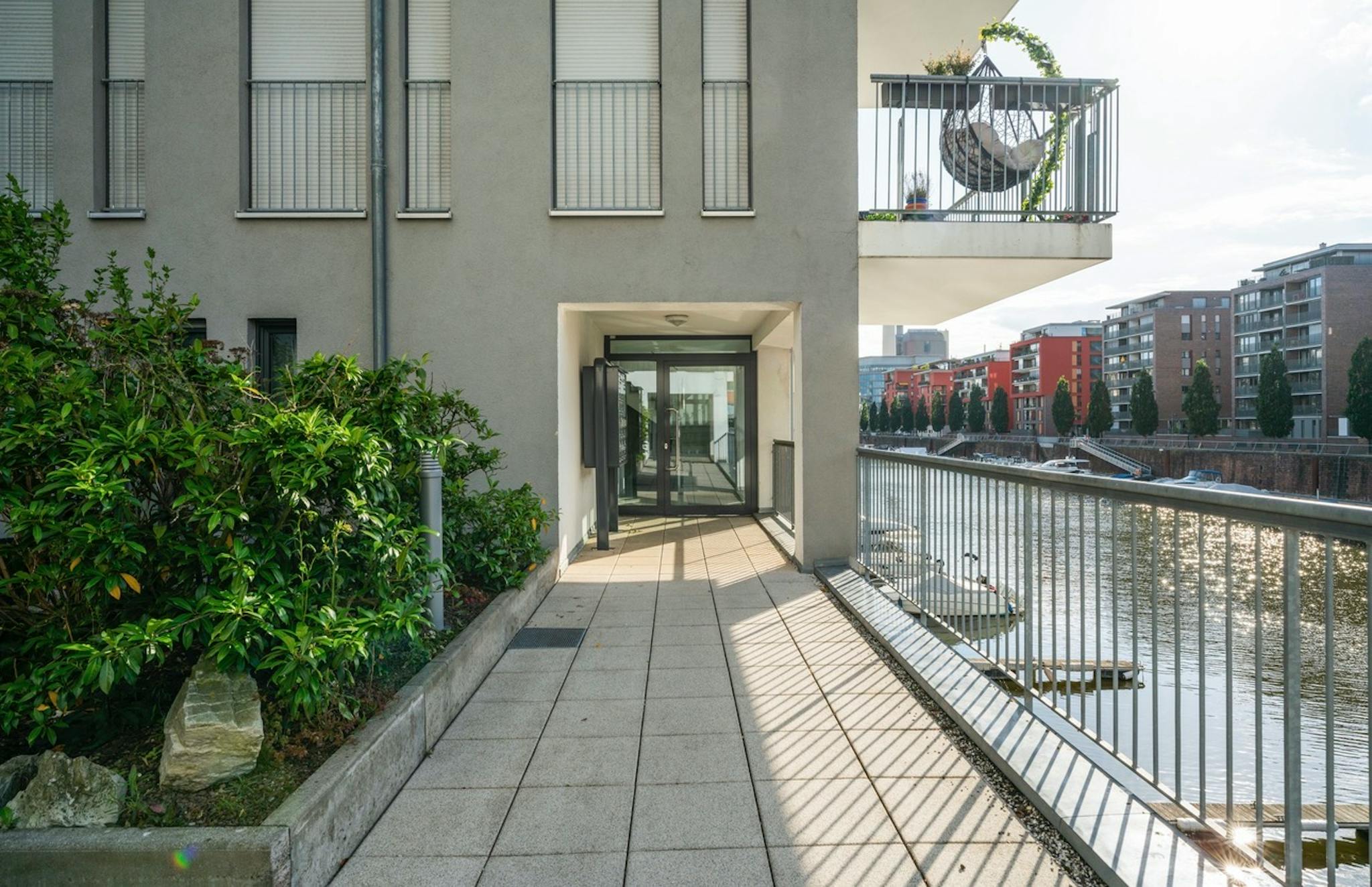 Diese außergewöhnliche Wohnung liegt in erster Reihe direkt am Fluss, auf einer Insel umgeben von Yachten, in einer ruhigen, sicheren und sehr exklusiven Wohnlage. Die Umgebung ist vollständig autofrei, grün und entspannt – und dennoch erreichen Sie die Innenstadt in nur ca. 10 Minuten zu Fuß, entlang der Flusspromenade.