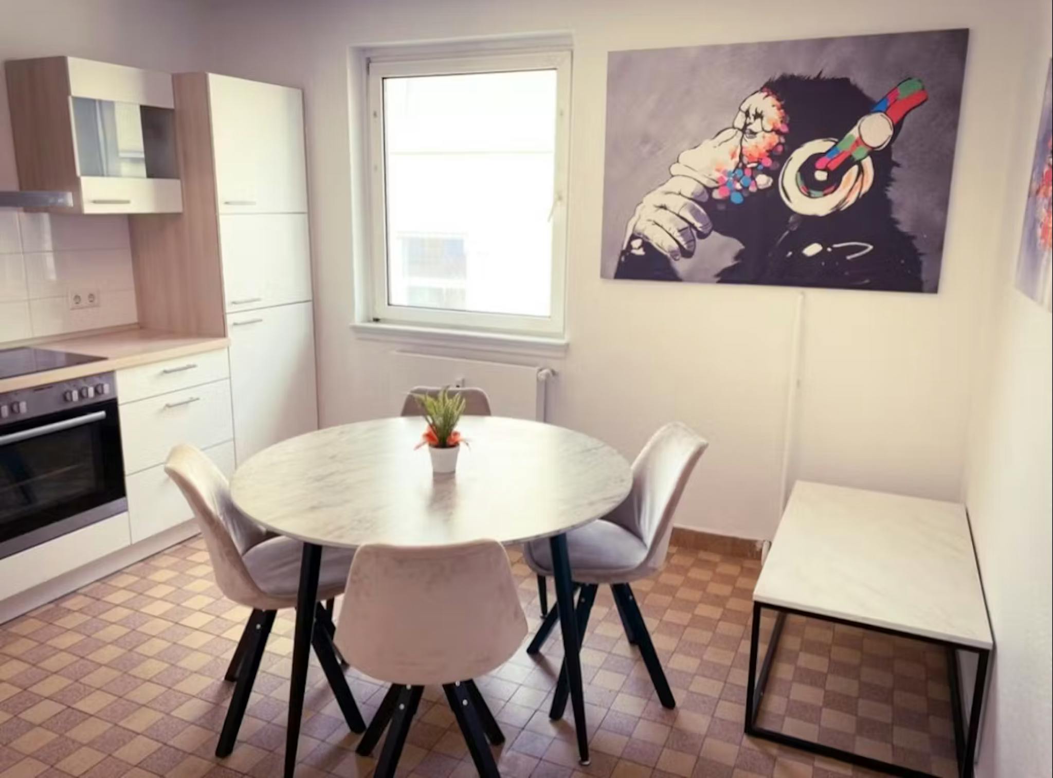 The apartment is located in a very central location in a beautiful and well-maintained old building between Konstablerwache and Opera Square. Ideal for young professionals. Eschenheimer Tor is just a few minute walk - the nearest underground station is just a few meters away from the apartment. More central is hardly possible! In addition, this neighborhood convinces not only by its location but also by its hip vibes. At every corner, one can find trendy bars and restaurants.